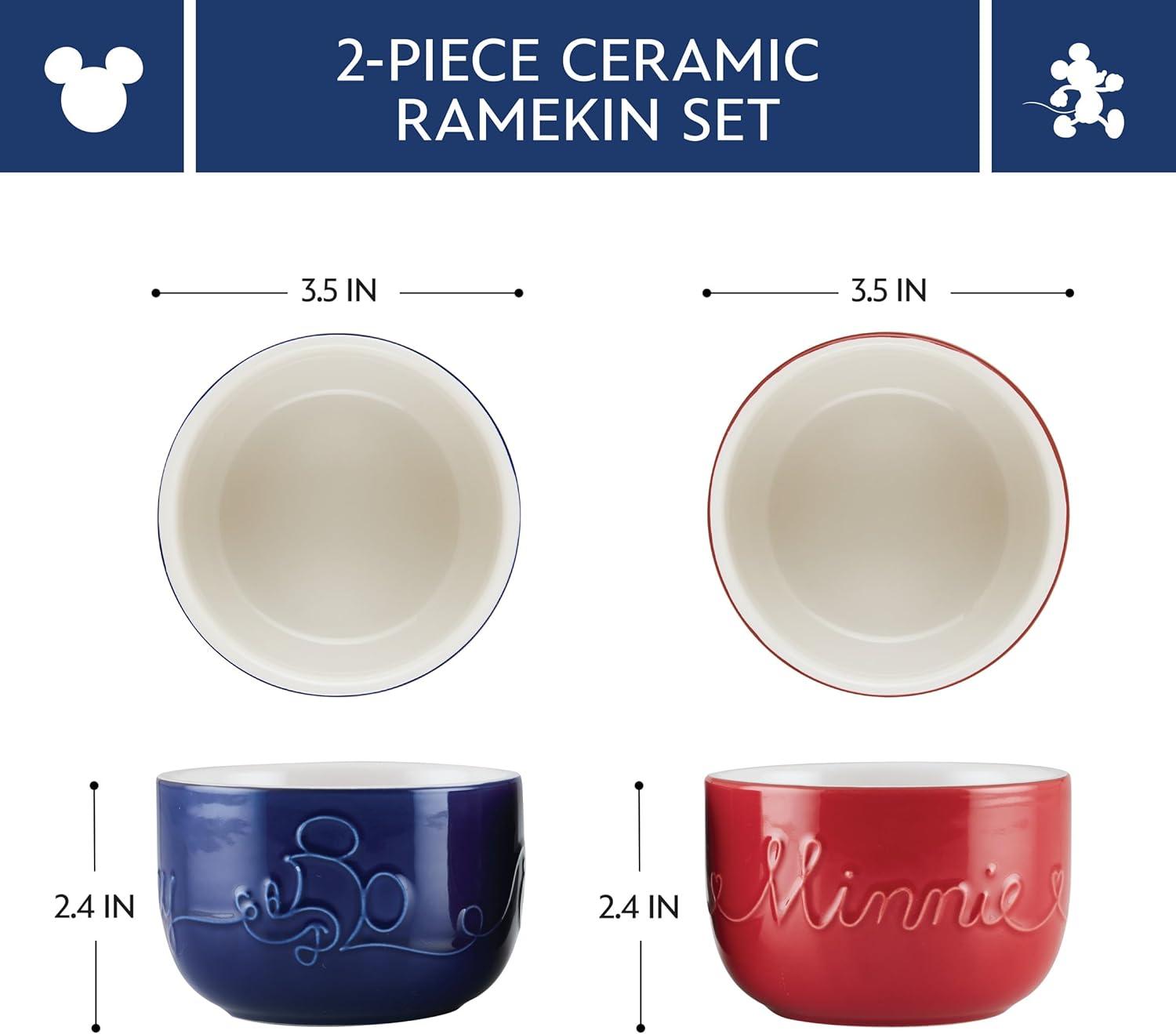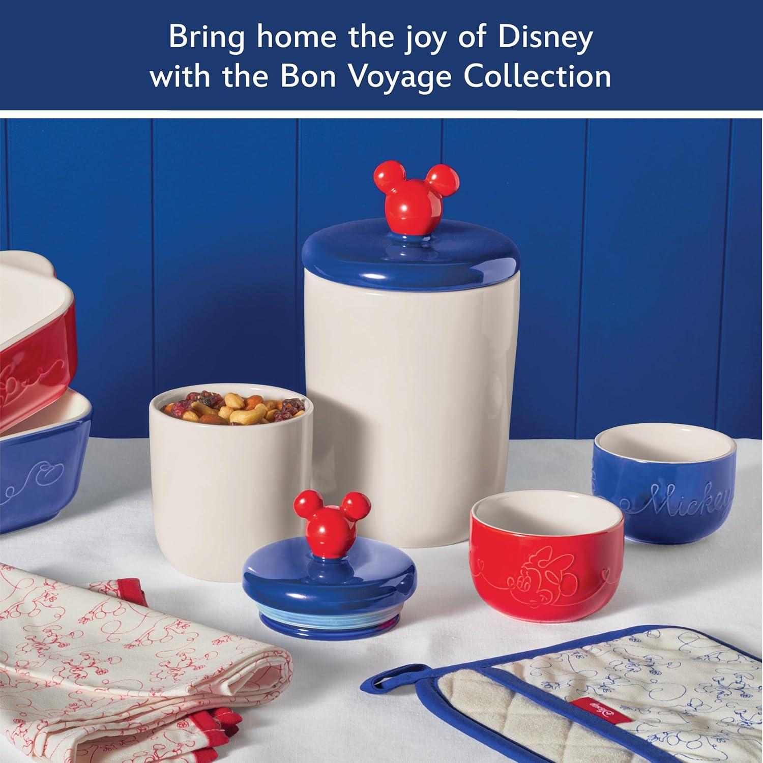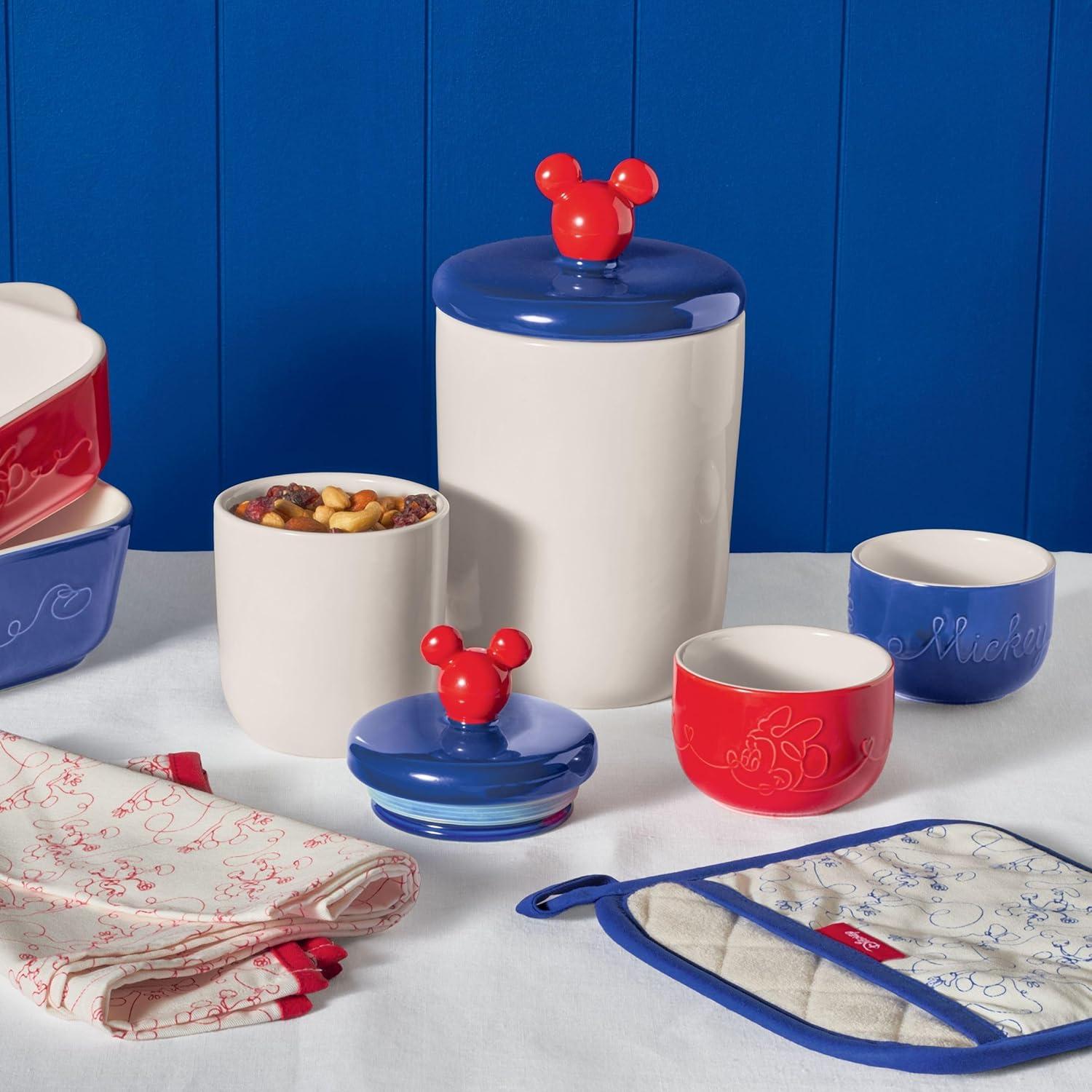 THE WONDER OF DISNEY: With bold blue, red, and white color palette that reflects the daring spirit of the iconic Disney Mickey Mouse, plus embossed Mickey and Minnie line art, the Ceramic Bakers invite you to add a touch of playfulness and vibrancy to your kitchen