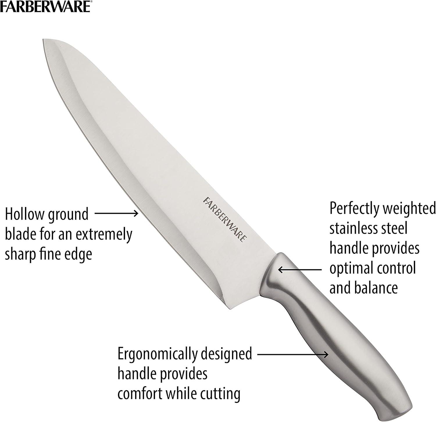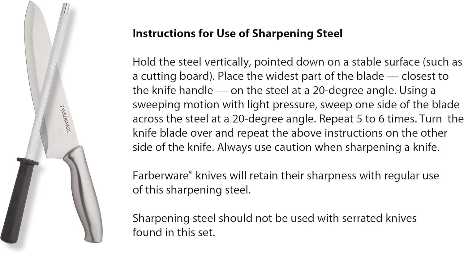EASY CARE: Farberware knives should be hand-washed with warm water and a mild detergent. Rinse and dry immediately. Stainless steel knives are not dishwasher safe. Lifetime limited warranty.