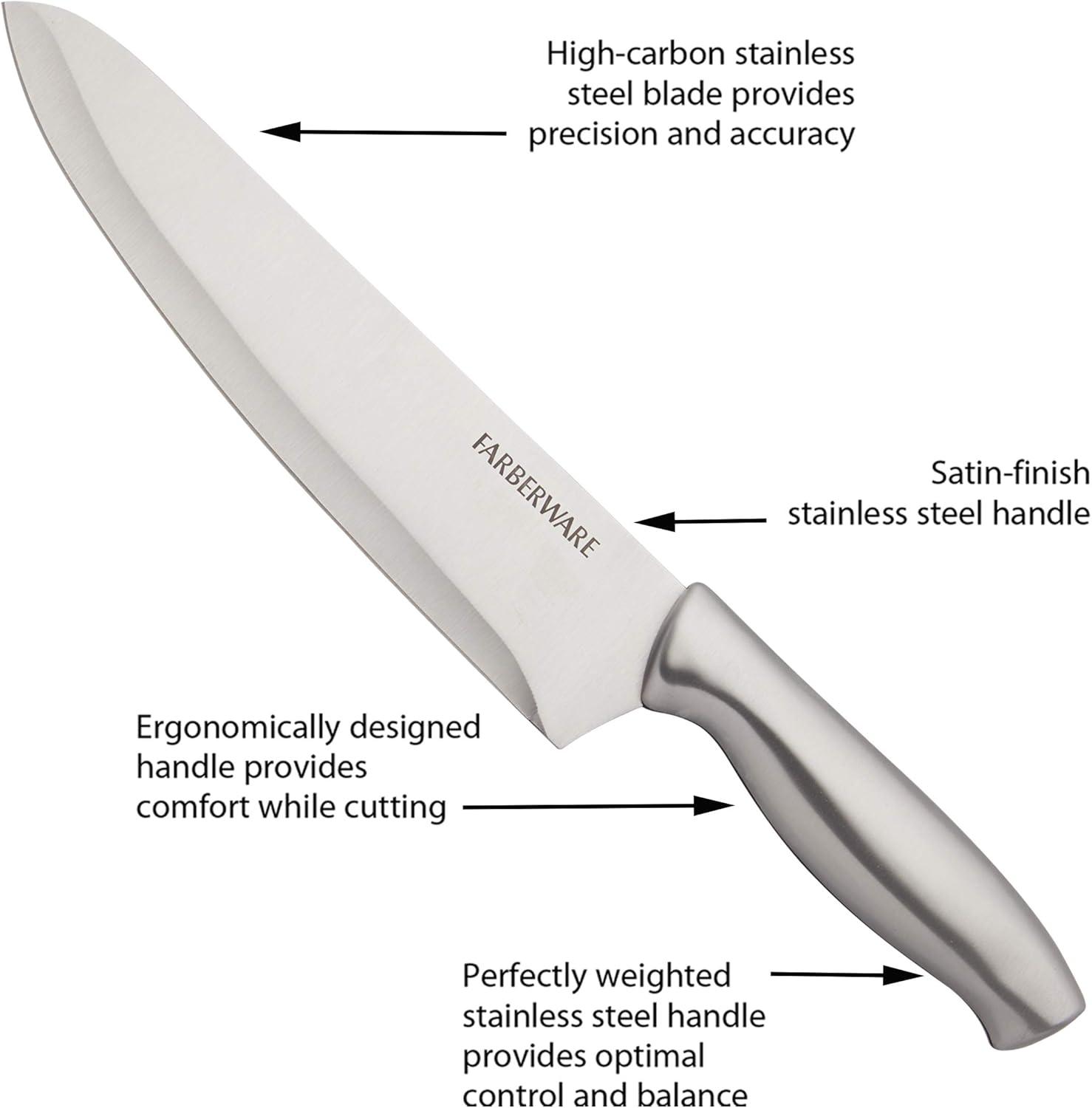 EASY CARE: Farberware knives should be hand-washed with warm water and a mild detergent. Rinse and dry immediately. Stainless steel knives are not dishwasher safe. Lifetime limited warranty.