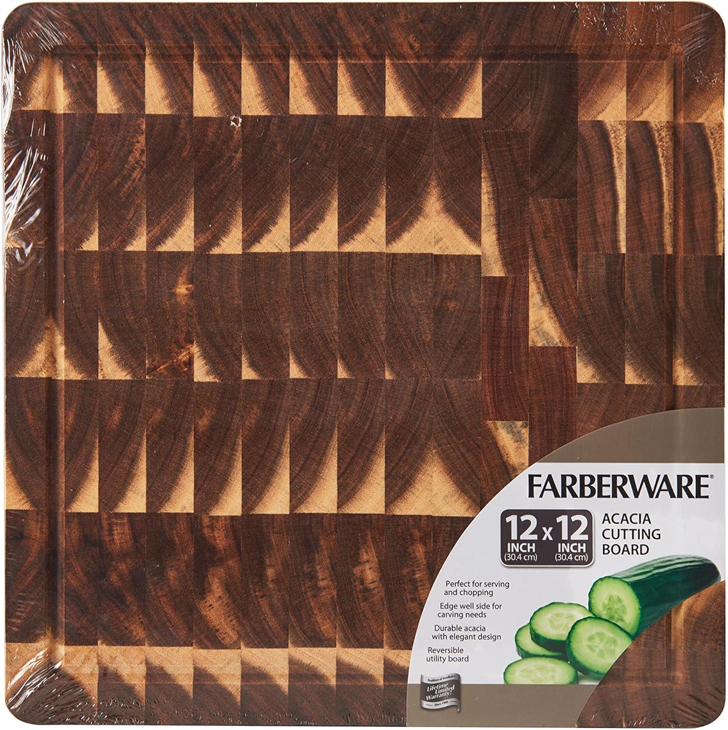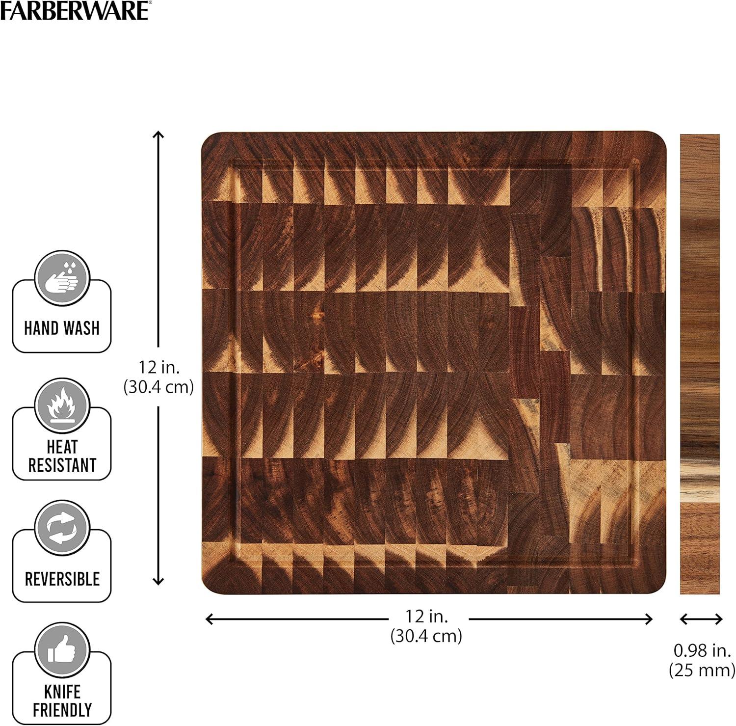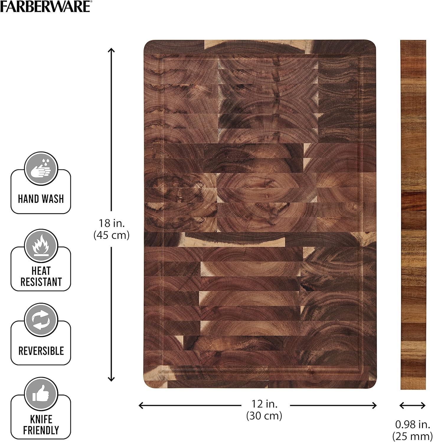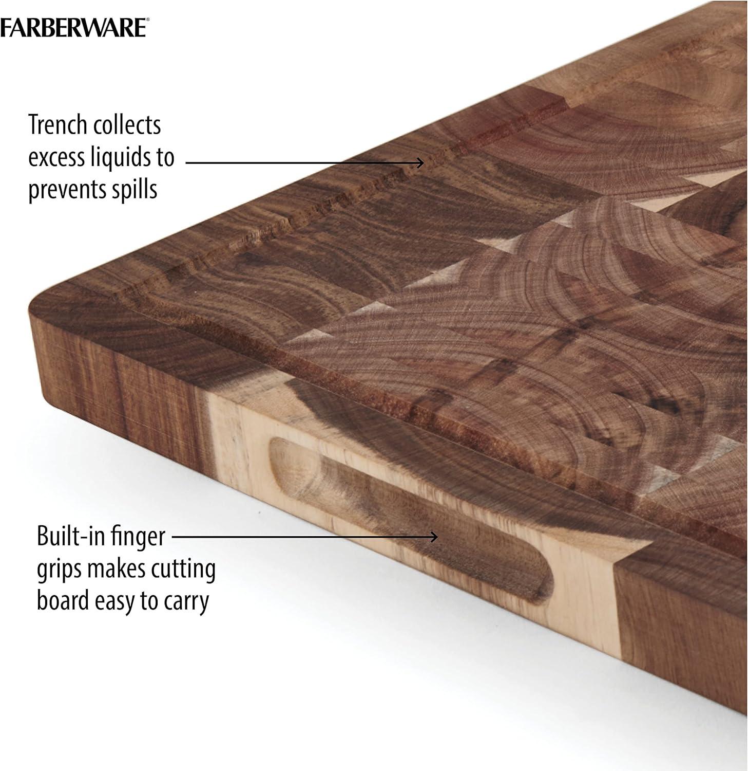 imageFarberware 16Inch Endgrain Rubberwood Cutting Board with Deep Juice Groove  Reversible Wooden Charcuterie Board for Chopping Serving Everyday Use with Finger Grooves for Easy CarryingAcacia