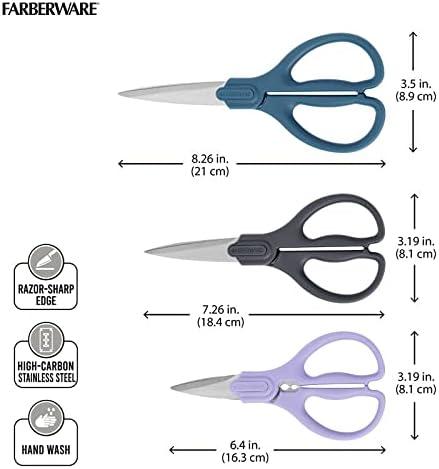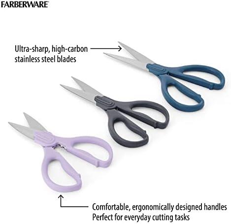 Farberware All Purpose Scissor Set, 3-Piece, Multicolor(Navy Gray Lavender)