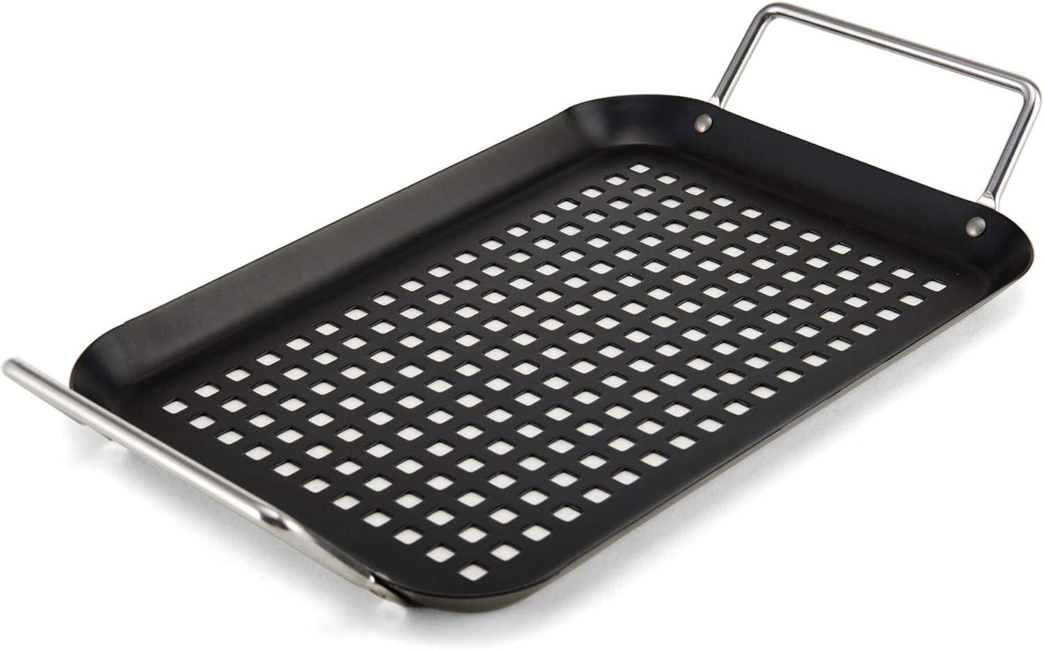 SECURE SURFACE: square topper keeps small foods from falling through the grill grates