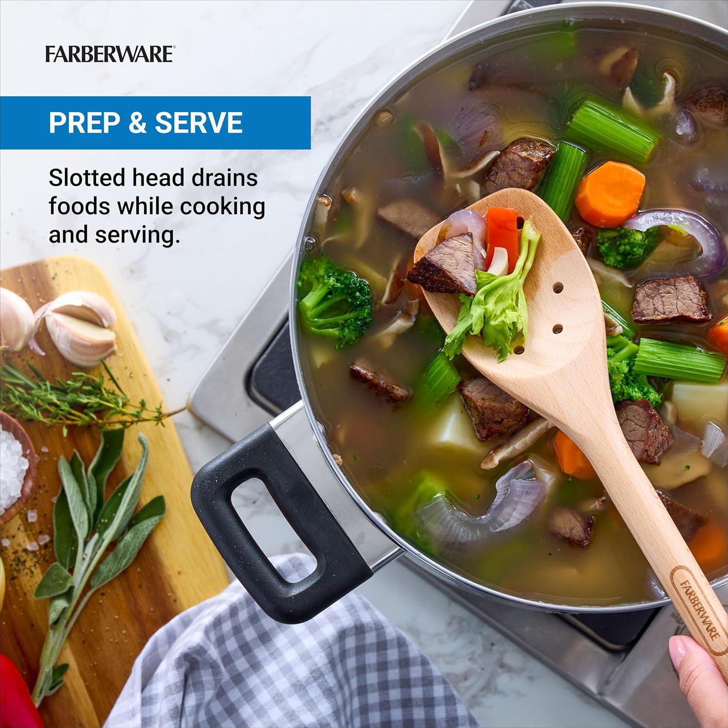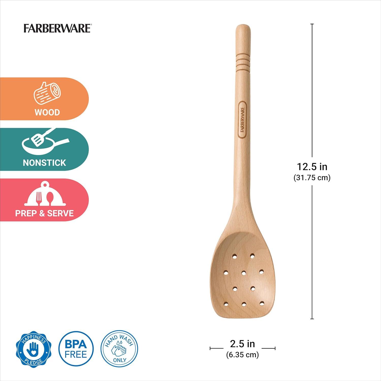 Farberware Beechwood Slotted Spoon - Durable Wooden Spoon for Cooking, Safe on Nonstick Cookware, Perfect for Stirring and Draining, Kitchen Utensil with Lustrous Finish