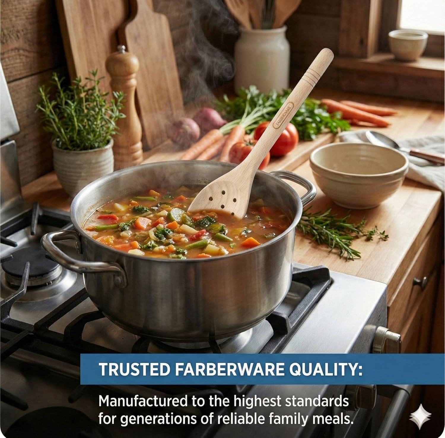 Farberware Beechwood Slotted Spoon – Durable Wooden Spoon for Cooking, Safe on Nonstick Cookware, Perfect for Stirring and Draining, Kitchen Utensil with Lustrous Finish