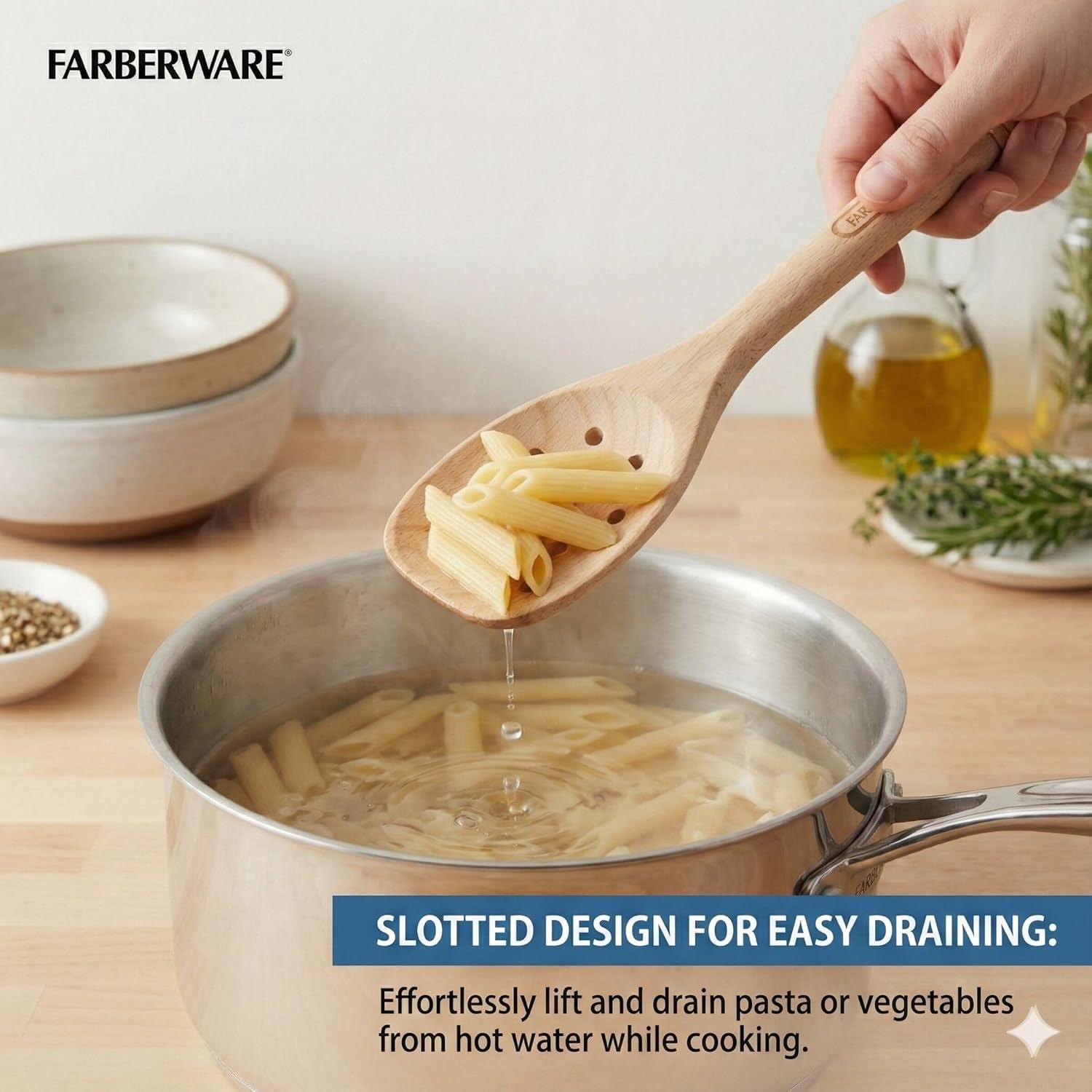imageFarberware Beechwood Slotted Spoon  Durable Wooden Spoon for Cooking Safe on Nonstick Cookware Perfect for Stirring and Draining Kitchen Utensil with Lustrous Finish