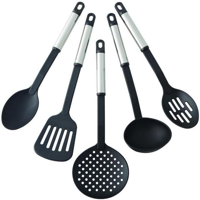 All-In-One Cooking Set: Includes slotted turner, ladle, slotted spoon, basting spoon, and strainer—a complete utensil set ready for cooking, stirring, and serving all your favorite dishes.