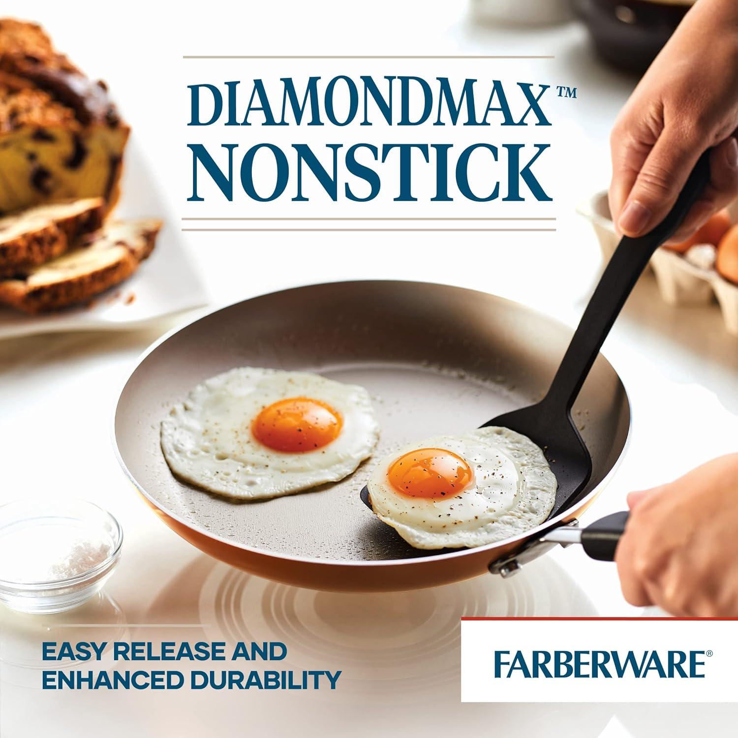 Farberware Cookstart DiamondMax Nonstick Frying Pan/Skillet, Dishwasher Safe, 12 Inch - Aqua(Copper)