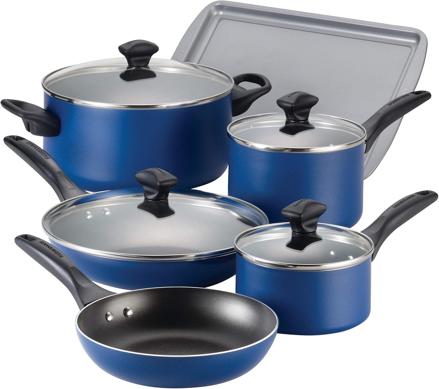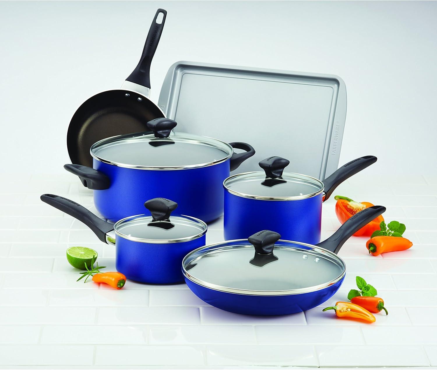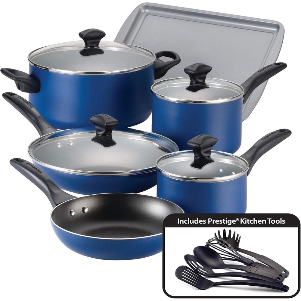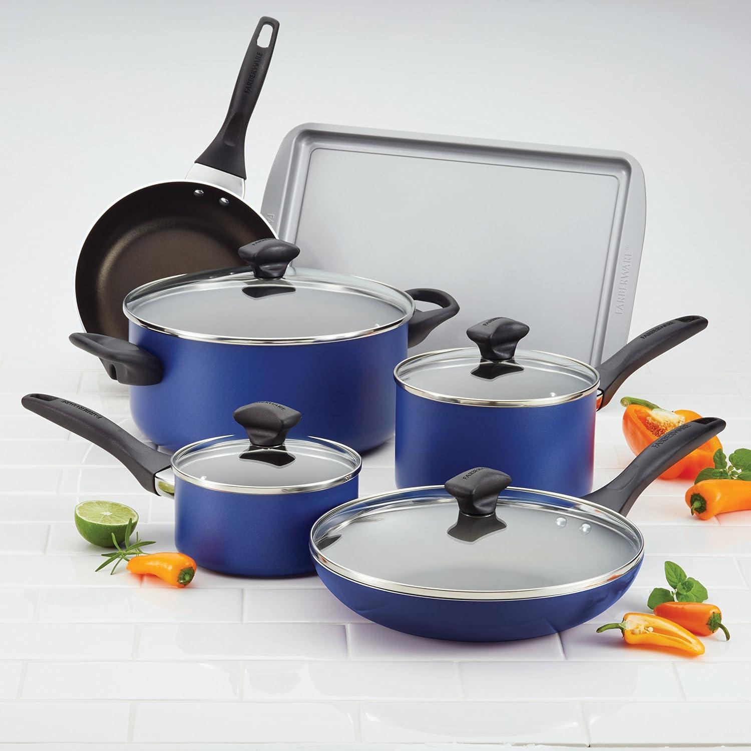 Farberware Dishwasher Safe Nonstick 15-Piece Cookware Set, Aqua(Blue)