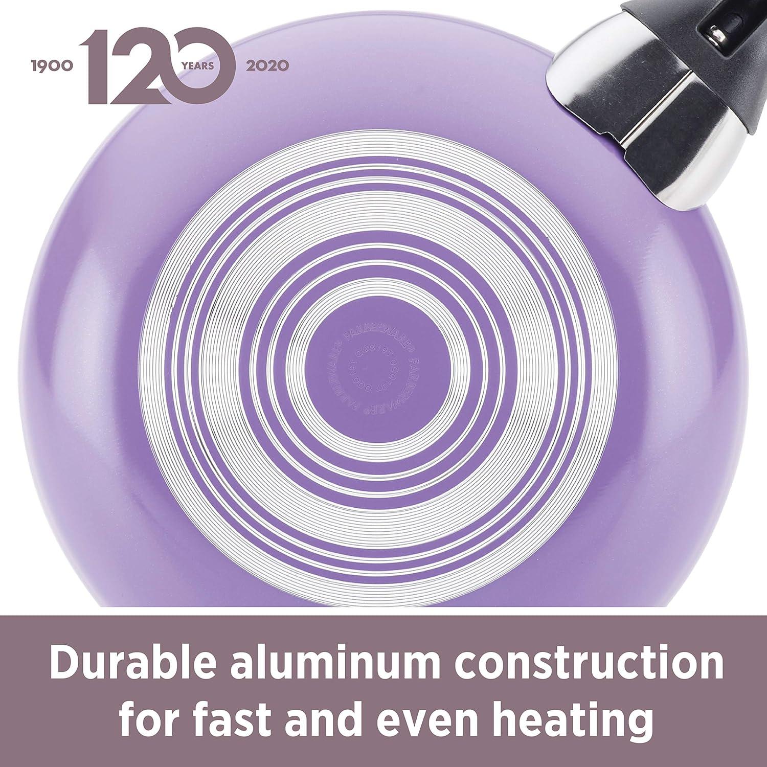 Farberware provides classic quality and dependability cooks have relied on since 1900, with modern styling for today. This Farberware Dishwasher Safe Nonstick 15-Piece Cookware Set is constructed from sturdy aluminum that heats quickly and evenly to help reduce hot spots that can burn food. Long-lasting, top-quality nonstick coats the pots and pans for excellent food release, while the sleek cookware exteriors add a touch of style to any type of kitchen décor. Shatter-resistant glass lids feature easy-to-grasp knobs while allowing cooking to be watched without heat and moisture loss, and the double-riveted handles provide a strong grip. Oven safe to 350° F, as well as dishwasher safe, this nonstick cookware set comes with five nylon Prestige(r) cooking utensils ideal for nonstick surfaces. And don’t forget dessert – bake delicious bar, rolled or drop cookies to perfection on the medium cookie sheet, which is oven safe to 450° F. Get any kitchen started in quality and style with the Farberware Dishwasher Safe Nonstick 15-Piece Cookware Set, and leave cleanup to the dishwashing machine.