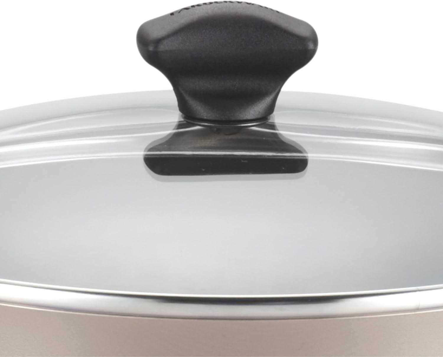 SHATTER-RESISTANT GLASS LIDS: Shatter-resistant glass lids allow cooking processes to be monitored while keeping heat, flavors and moisture sealed in