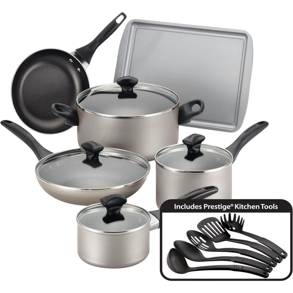 imageFarberware Dishwasher Safe Nonstick 15Piece Cookware Set AquaPewter