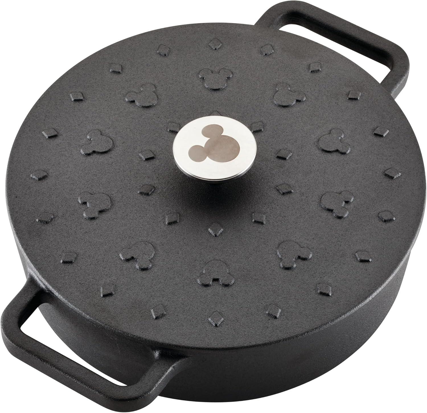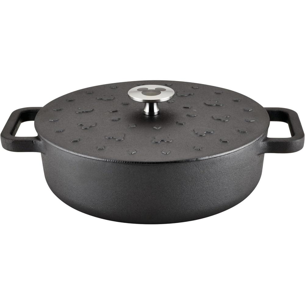 Farberware Disney Monochrome Pre Seasoned Cast Iron Shallow Casserole Pan with Lid, 3 Quart - Black