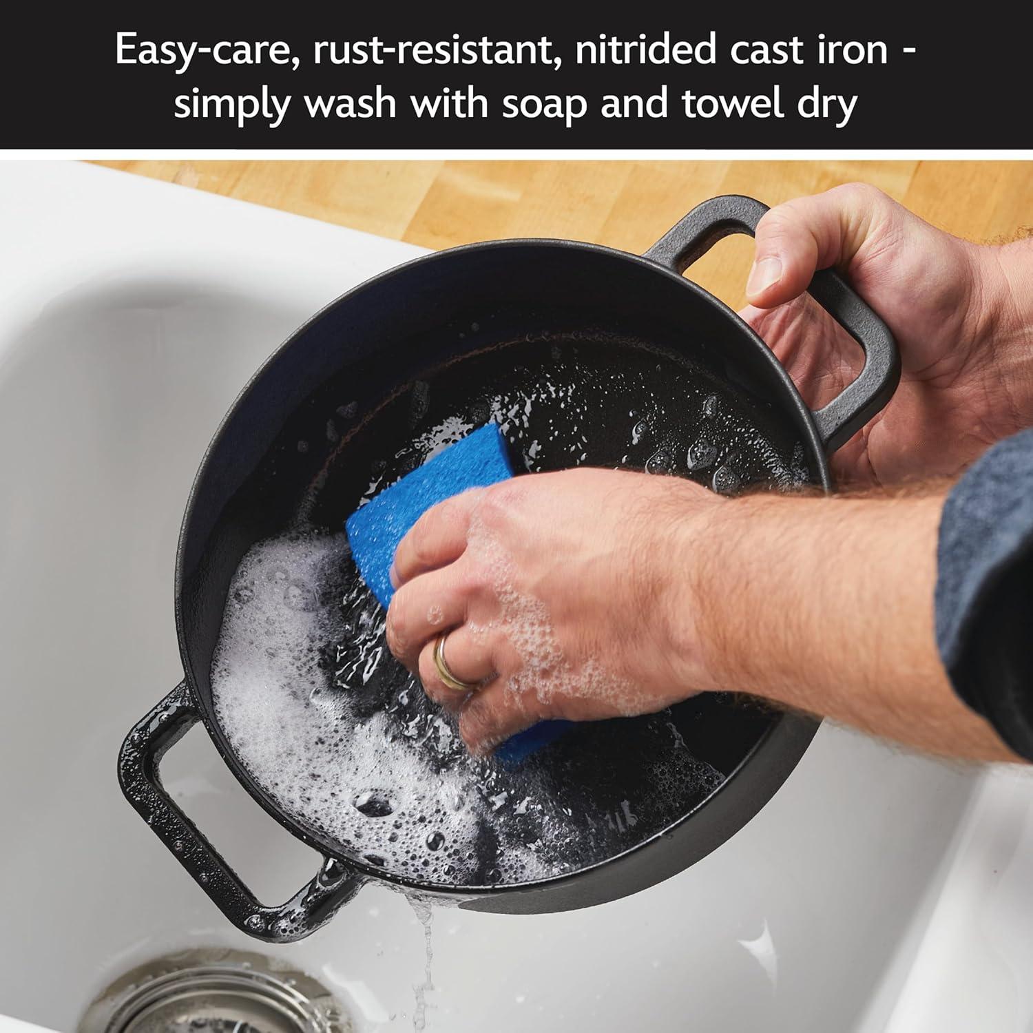 NITRIDED & PRE-SEASONED: This Dutch oven is pre-seasoned for natural nonstick performance that improves with ongoing use and nitrided for exceptional rust-resistance and durability