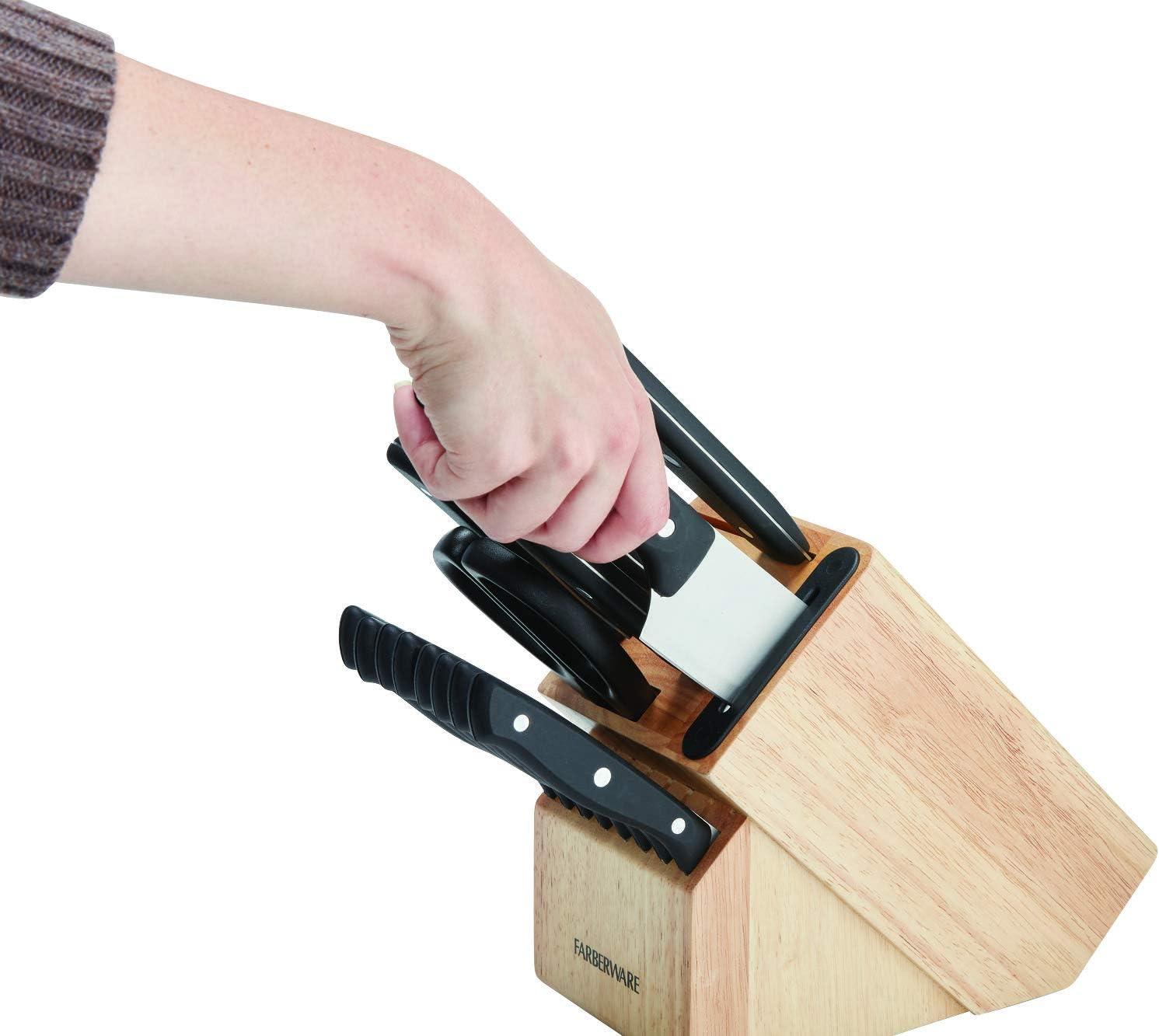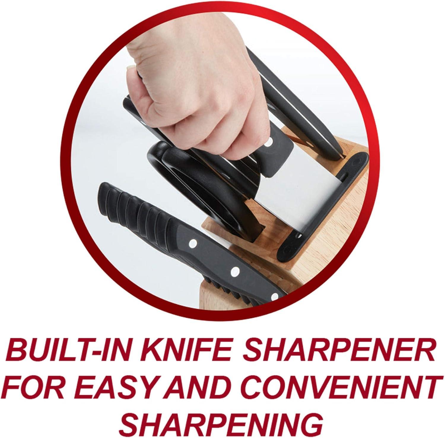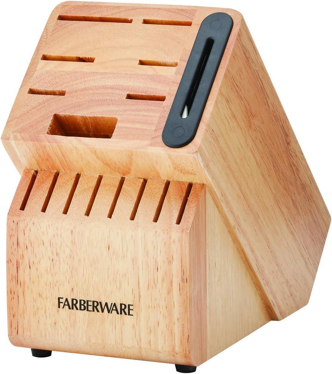Farberware Edgekeeper 16-Piece Stainless Steel Knife Block Set with Built in Knife Sharpener, High Carbon-Stainless Steel Kitchen Knives, Razor-Sharp Knife Set, Black(Natural)