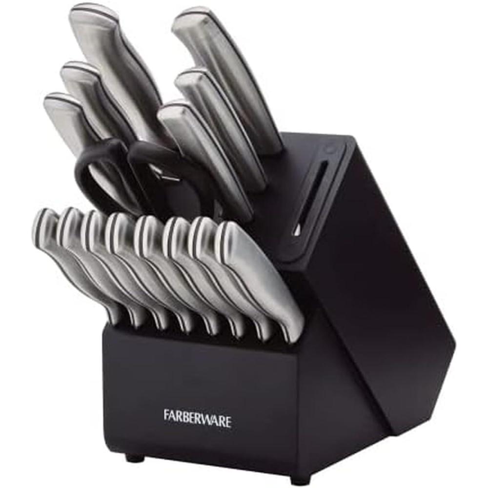 imageFarberware Edgekeeper 16Piece Stainless Steel Knife Block Set with Built in Knife Sharpener High CarbonStainless Steel Kitchen Knives RazorSharp Knife Set BlackNatural