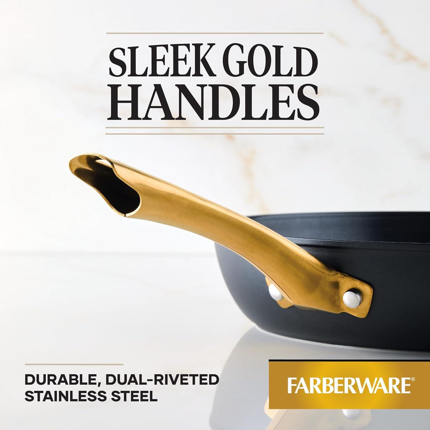 Farberware Forged Induction Ceramic Cookware Nonstick Frying Pan/Skillet, Dishwasher Safe, Suitable for All Stovetops, 10 Inch Fry Pan - Black and Gold(Black)
