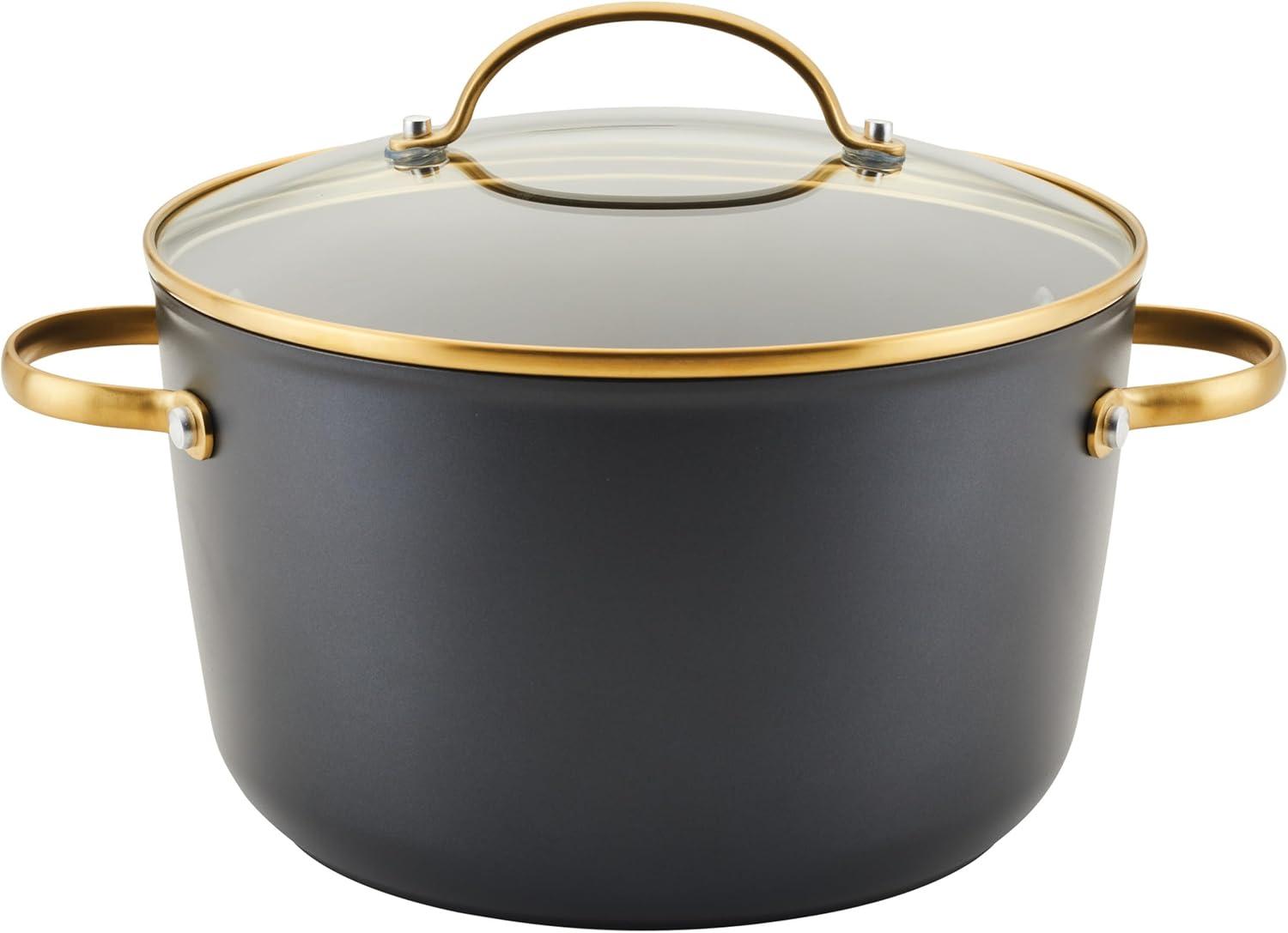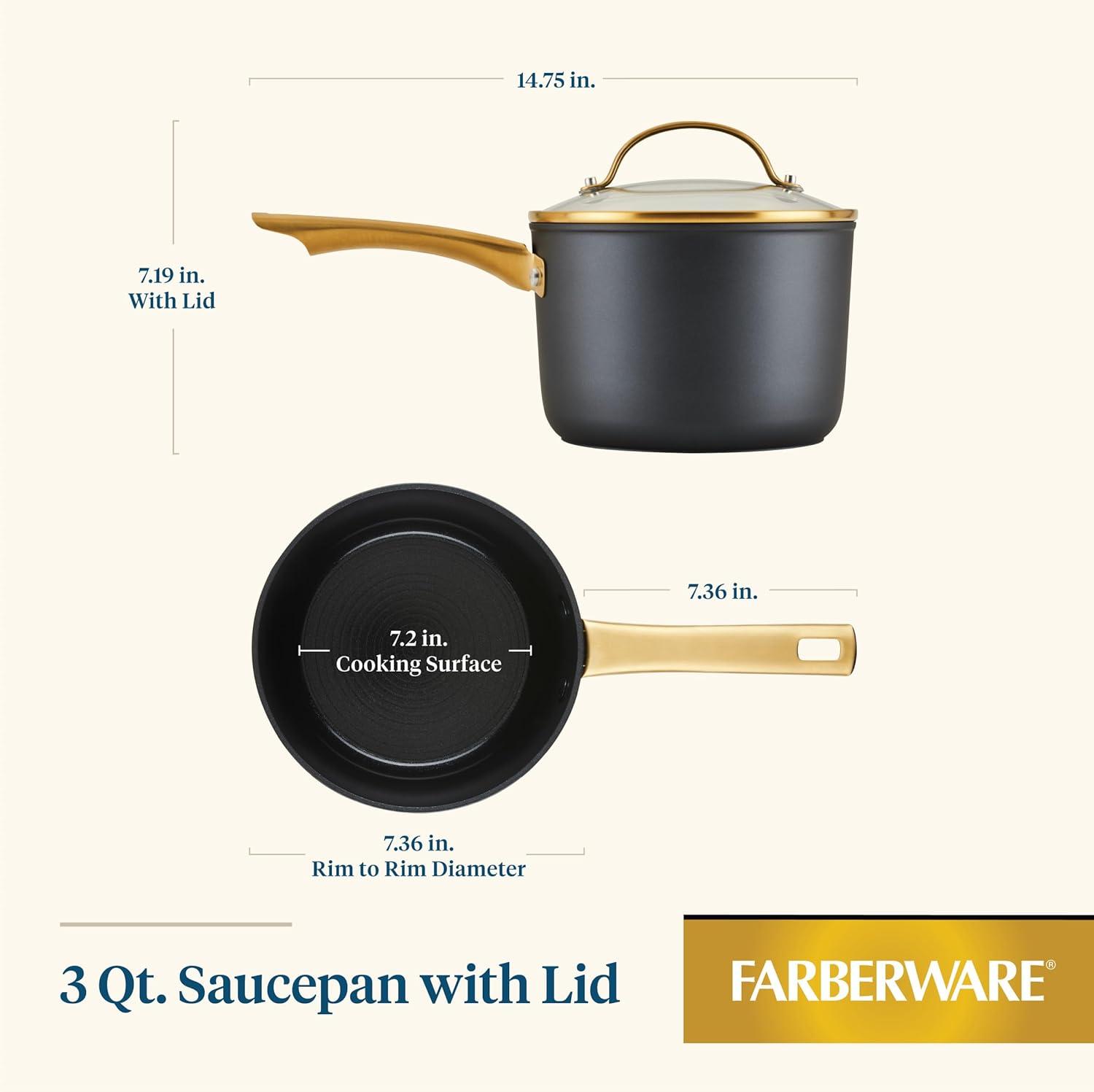 Farberware’s Forged Induction collection combines high-performance ceramic nonstick with a beautiful design that looks good on any stovetop, including induction. Forged Induction features safe, non-toxic ceramic nonstick surfaces* so you can cook with confidence, forged-aluminum construction for superior heat distribution, and edge-to-edge steel bases for enhanced durability. Plus, this 6-quart stockpot with lid stands out in any kitchen or on any dining table with a matte-black exterior and elegant gold accents. *Product design does not involve intentionally adding to the product any toxic substances, including PFAS, PFOA, PTFE, lead, or cadmium, which may otherwise be present in the environment.