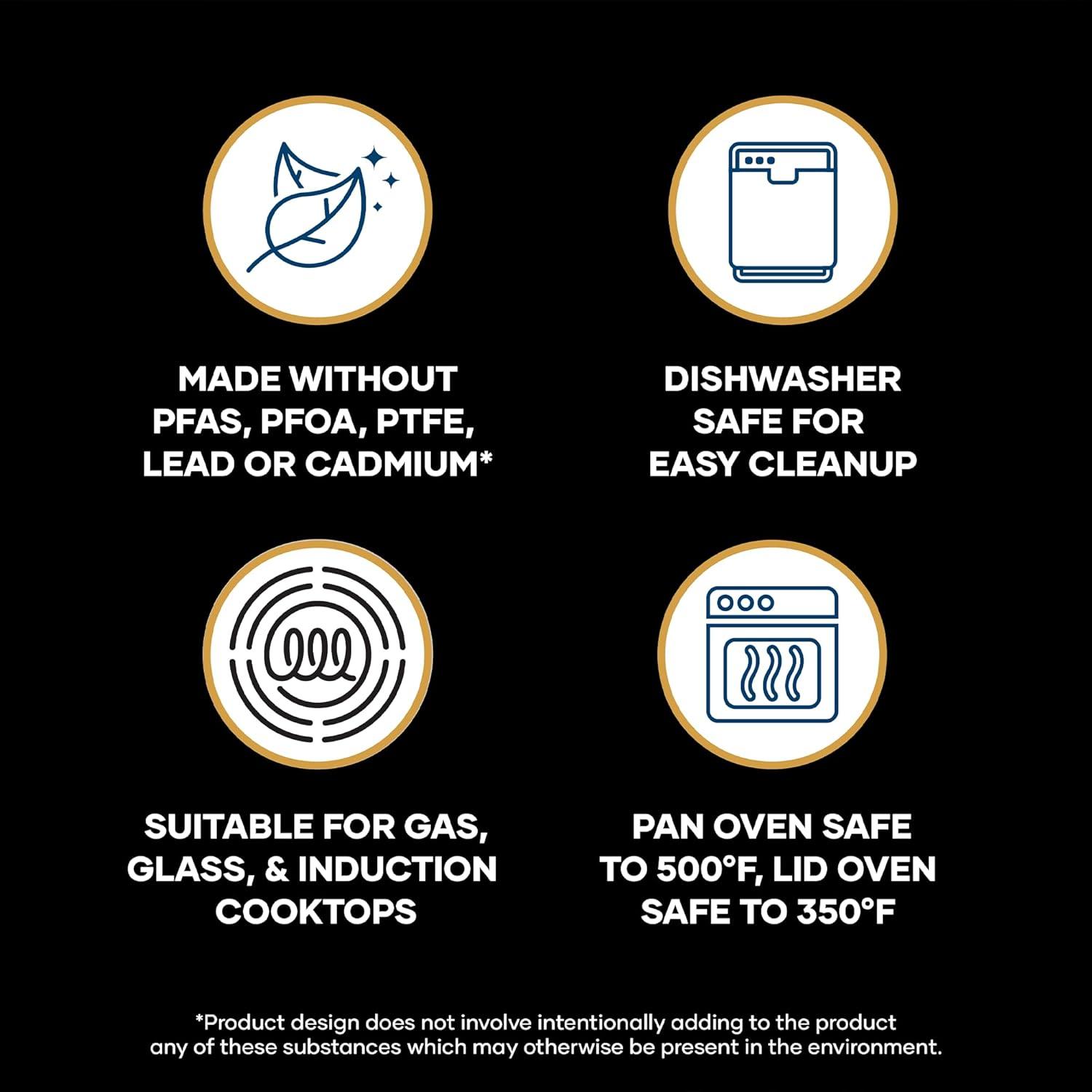 NON-TOXIC CERAMIC NONSTICK: With safe, non-toxic ceramic nonstick cooking surfaces – made without PFAS, PFOA, PTFE, lead, or cadmium – these pots and pans release food easily with minimal cleanup. (Product design does not involve intentionally adding to the product any of these substances which may otherwise be present in the environment)