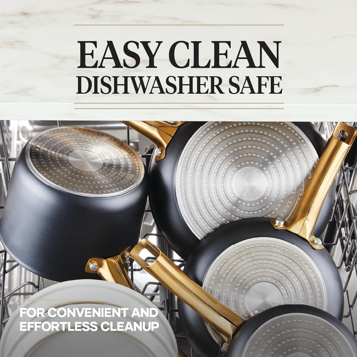 Farberware Forged Induction Ceramic Nonstick Pots and Pans Set with Lids and Kitchen Cooking Tools – Dishwasher Safe, Suitable for All Stovetops, 12 Piece Cookware Set – Black and Gold(Taupe)