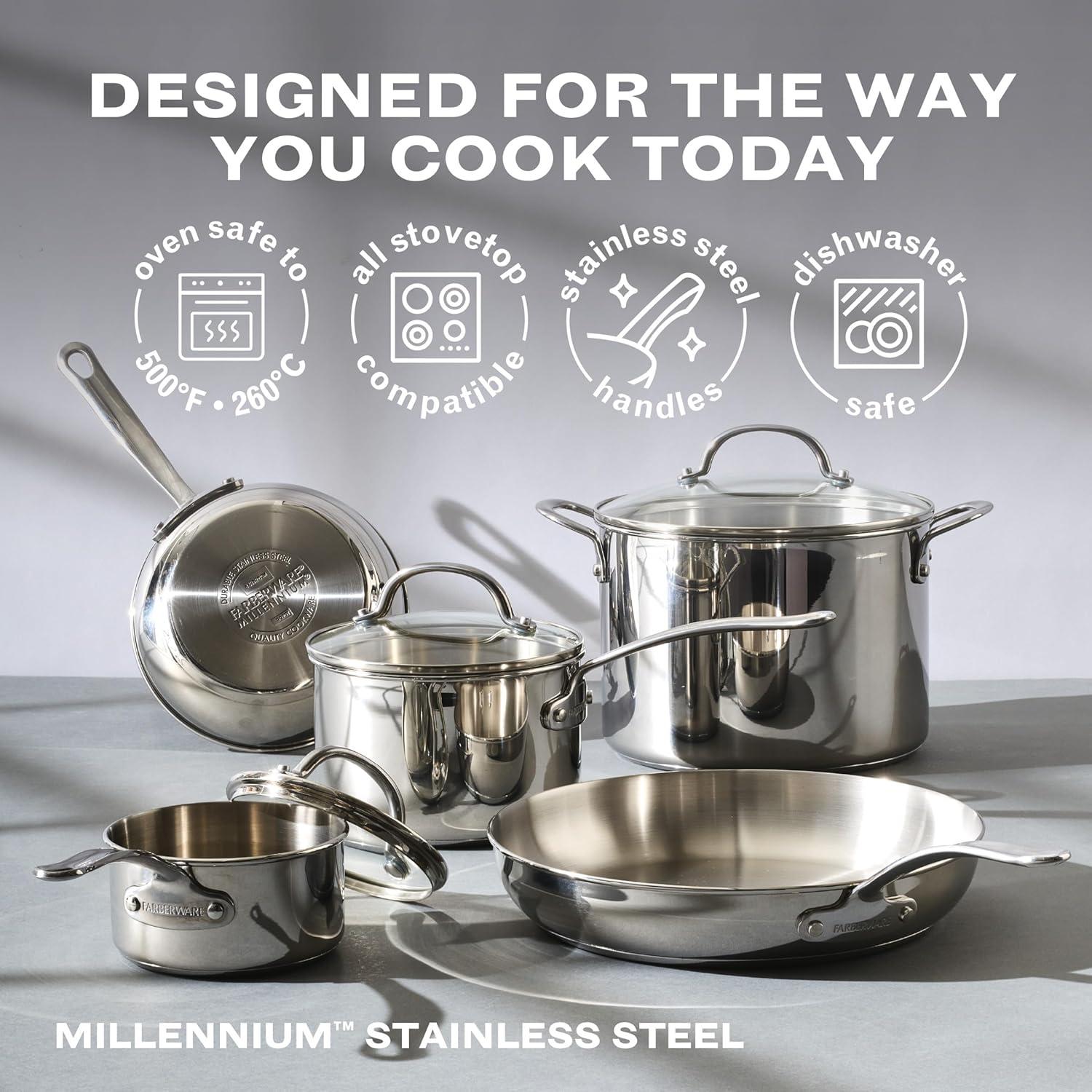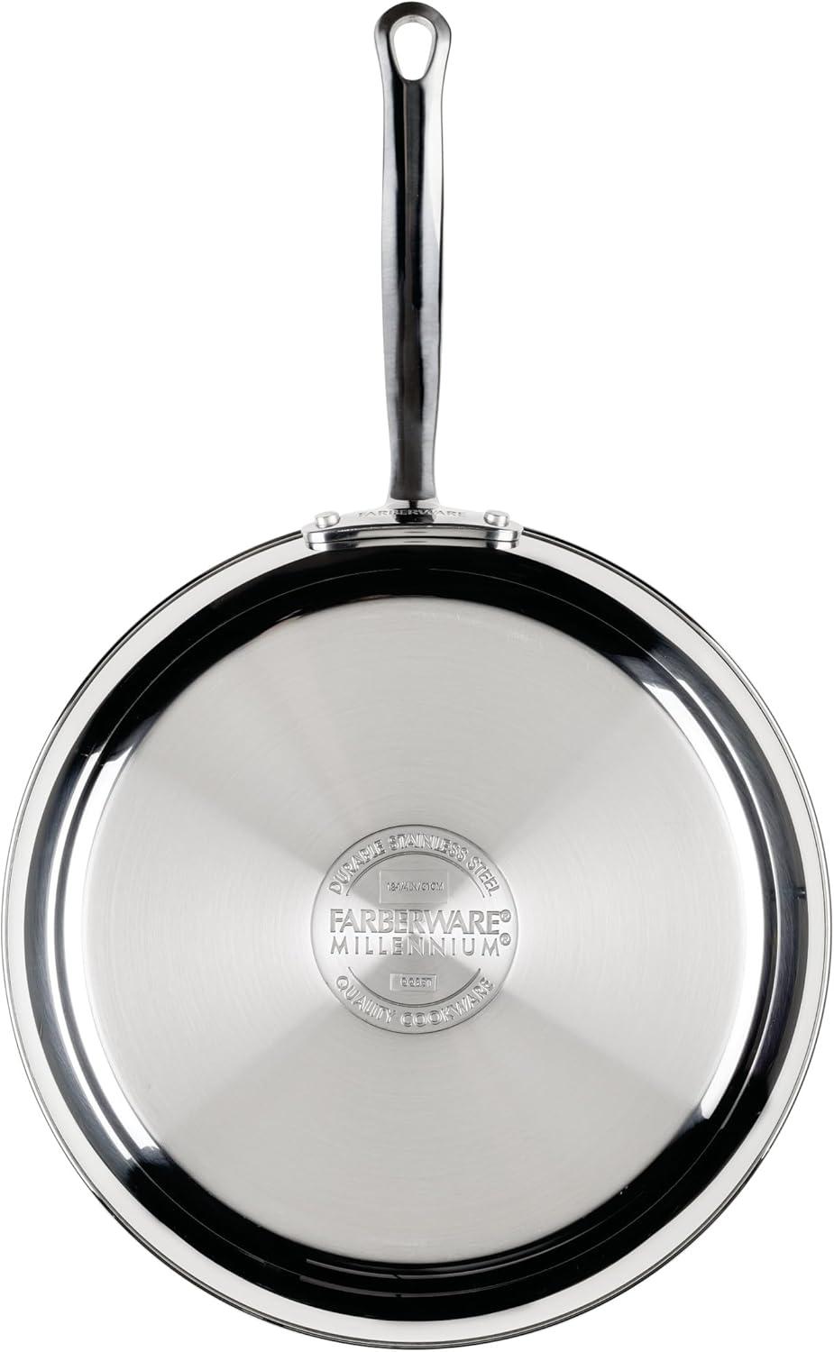 Farberware Millennium Stainless Steel is designed for the way we cook today. Built with Farberware’s iconic encapsulated clad base, a thick aluminum core is bonded between layers of stainless steel for exceptional heat distribution, warp resistance, and edge-to-edge strength. The result: fast, even cooking, induction suitability, and truly dishwasher-safe convenience. Among the lightest stainless steel collections on the market, Millennium is engineered to stay sturdy and durable without the extra weight–perfectly balanced for stability and control, with strong, comfortable stainless steel handles. Made without PFAS, BPA, lead, or cadmium* and crafted from non-reactive stainless steel, Millennium preserves food’s true flavors while ensuring lasting safety in the kitchen. A sleek, mirror-polished finish and straight-sided design bring a professional yet modern look that complements any kitchen. Farberware Millennium Stainless Steel is cookware you can count on—meal after meal, year after year. Your Kitchen. Your Era. Your Farberware. *Product design does not involve intentionally adding to the interior coating these materials, which may otherwise be present in the environment.