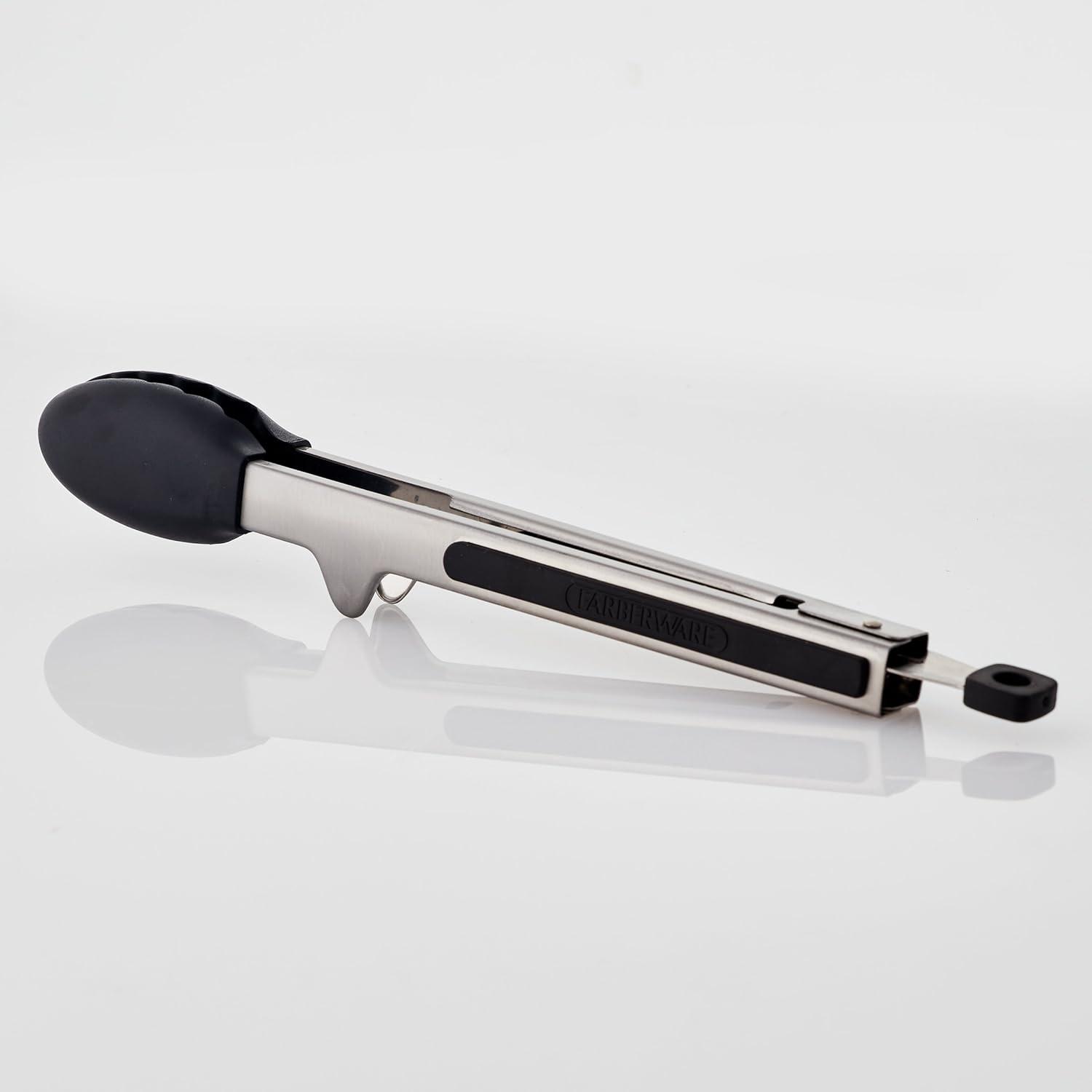 Farberware Pro 5282803 Steel Head One Hand Lock Tong, 12-Inch, Black(Silicone Tip Tongs 12-inch)