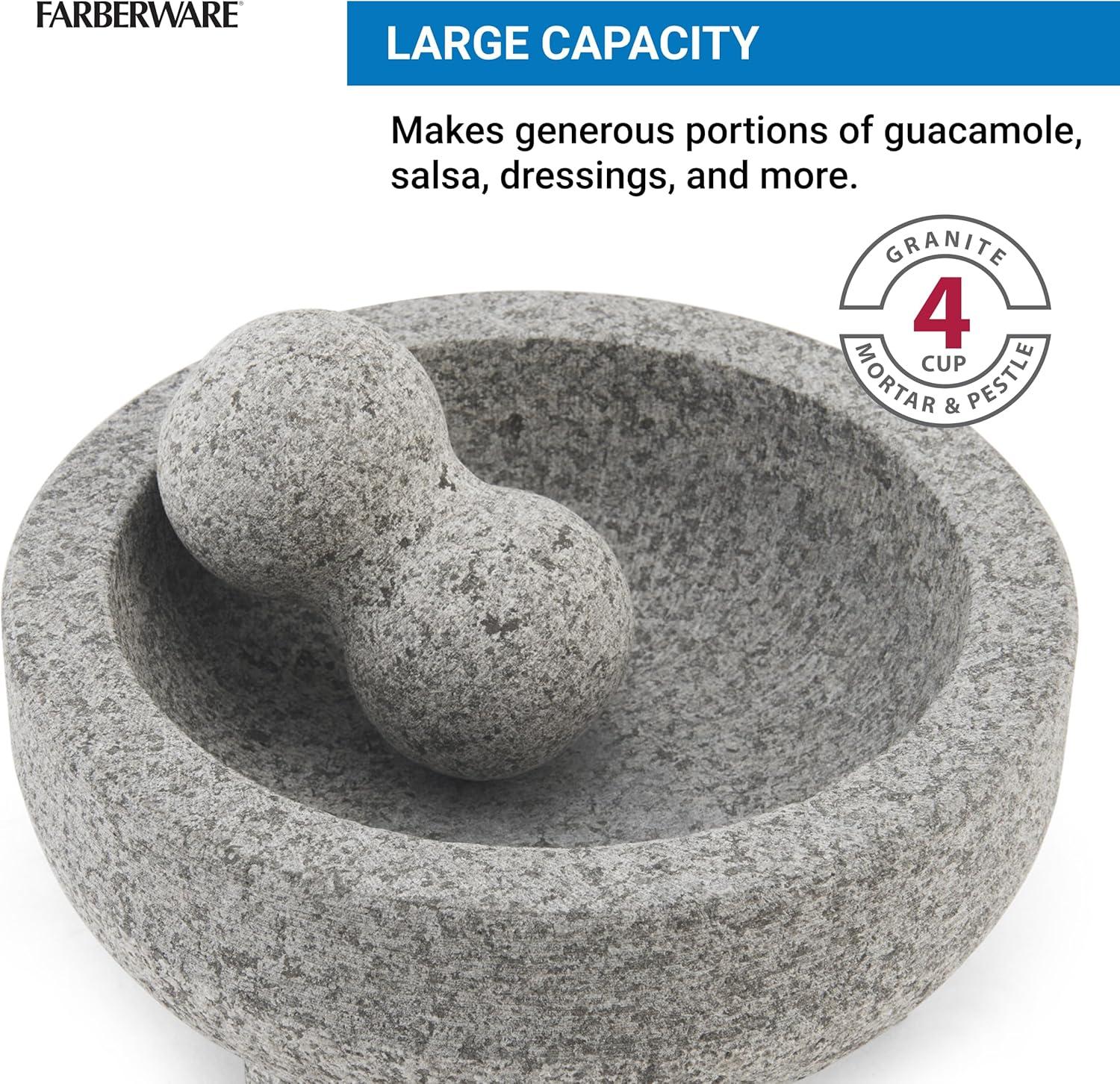 Farberware Professional Granite Molcajete Mortar and Pestle Stone Grinder, 4-Cup