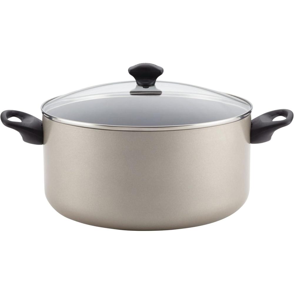 Farberware Cookware always combines stylish construction with great cooking results, and the Farberware Aluminum Nonstick 10.5-Quart Covered Stockpot is no exception. Aluminum construction helps this Farberware stockpot heat quickly and evenly from base to rim, and the long-lasting nonstick interior provides beautiful food release for seared sirloin cubes, browned chicken, and all the other delicious ingredients in homemade soups and stocks. The capacity is generous enough for a large batch of the family's favorite stew or soup for a local picnic or potluck. A shatter-resistant glass lid helps hold the heat and moisture inside the covered pot and keeps the cooking visible for reducing broths and other liquids. Farberware cookware has been making cooking shine in home kitchens for years, and this durable stockpot is constructed for years of use. The easy-to-clean exterior brings a dash of style to any kitchen, and because the stockpot is dishwasher safe, cleanup is as simple as can be. The double-riveted side handles are solid for plenty of support and leverage when moving or pouring from the filled pot. Conveniently oven safe to 500°F, this stockpot makes a perfect addition for whenever your own Farberware set can use an extra boost or a fresh piece. Every kitchen needs a sizeable stockpot for stews, soups and more, and the recipe truly begins with the Farberware Aluminum Nonstick 10.5-Quart Stockpot. Farberware siempre combina estilo de construcción con grandes resultados de cocción y la olla Farberware de aluminio con antiadherente de 10.5-Cuartos cubierta no es la excepción. Construcción de aluminio ayuda a esta olla Farberware a calentarse mas rapido y de forma uniforme desde la base hasta el borde y el antiadherente en el interior de larga duración proporciona una liberación de comida hermosa como para cubos de solomillo braseado, pollo dorado, y todos los demás ingredientes deliciosos en sopas caseras. La capacidad es lo suficientemente grande para un gran guiso o sopa favorita de la familia para un picnic o reunion. La tapa de vidrio es resistente a los golpes y ayuda a mantener el calor y la humedad dentro de la olla cubierta y mantiene la cocción visible para reducir caldos y otros líquidos. Los utensilios de Farberware de cocina an estado en las cocina de casas durante años, y esta olla duradera es construida para años de uso. El exterior es fácil de limpiar y aporta un toque de estilo a cualquier cocina, y debido a que la olla es apta para lavavajillas, la limpieza es tan simple como pueda ser. Las asas laterales de doble remachado son sólidas para bastante apoyo y apalancamiento cuando se mueve o se vierte desde la olla llena. Convenientemente compatible para horno asta 500°F, esta olla hace un complemento perfecto para cuando su propio juego de ollas de Farberware puede utilizar un refuerzo extra o una nueva pieza. Cada cocina nesecita una olla de tamaño considerable para guisos, sopas y mucho más, y la receta comienza verdaderamente con la olla de Farberware de aluminio de 10.5 Cuartos con antiadherente.
