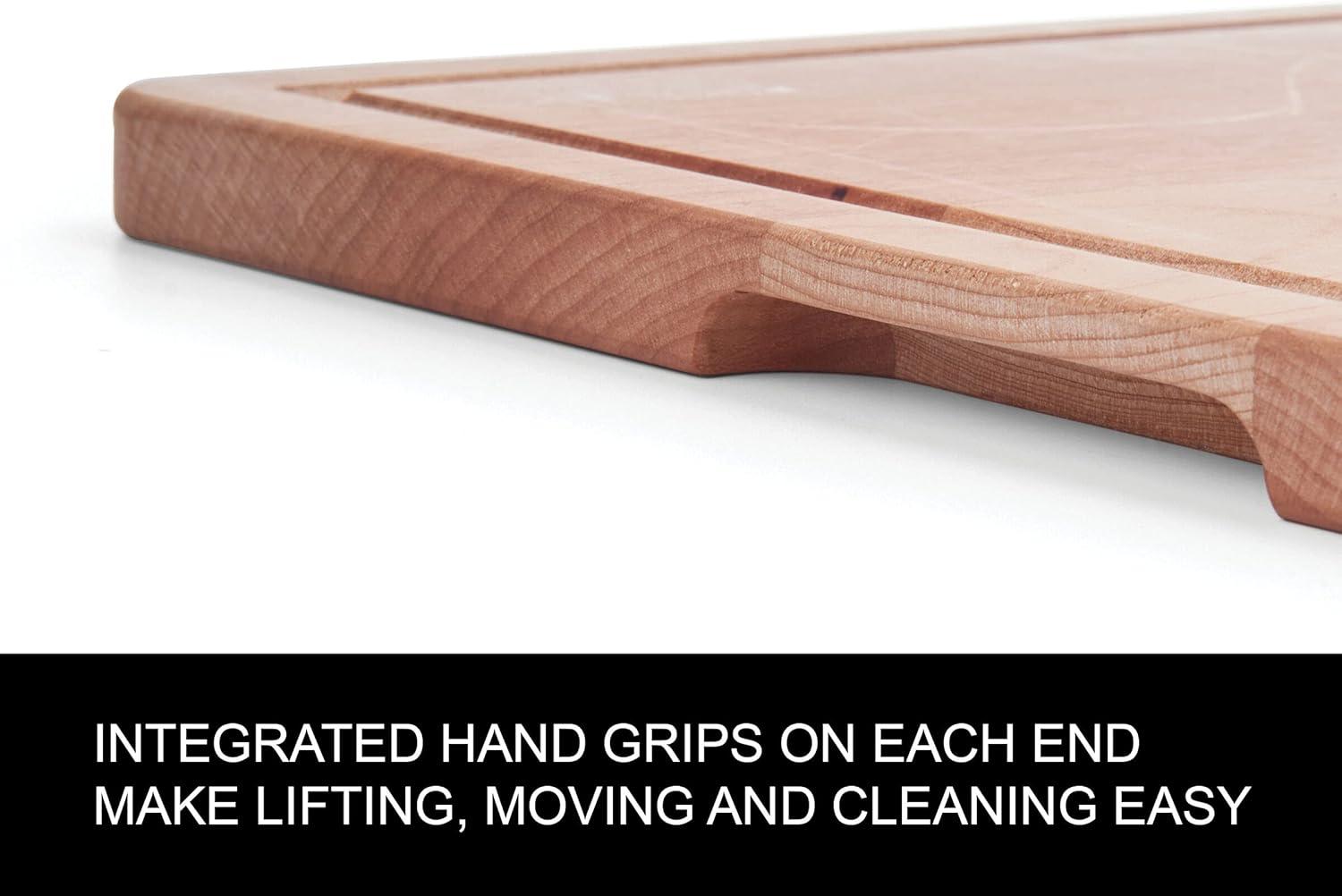 DEEP JUICE GROOVE: This board features a grooved channel that is designed to catch drippings and juices, keeping countertops neat and tidy.