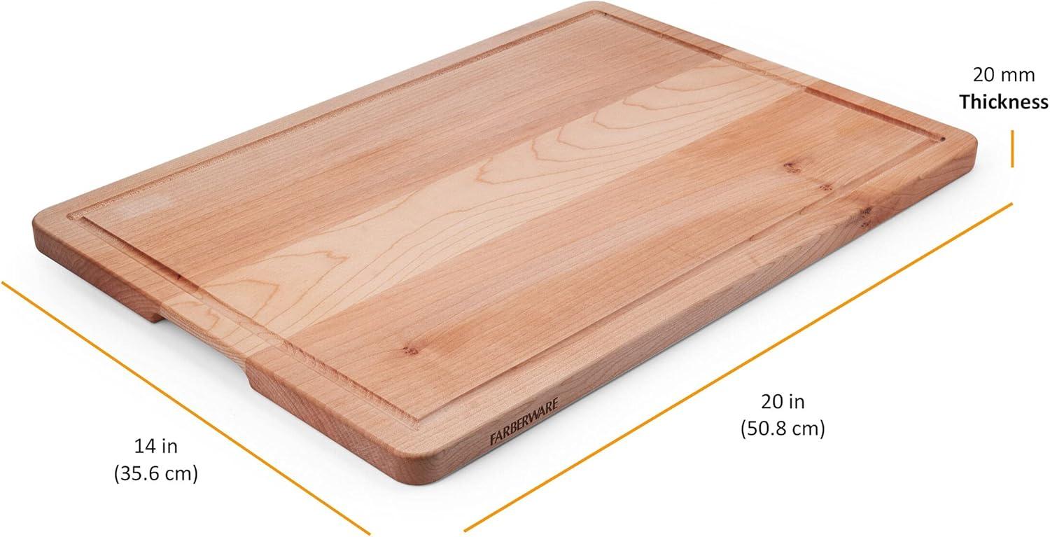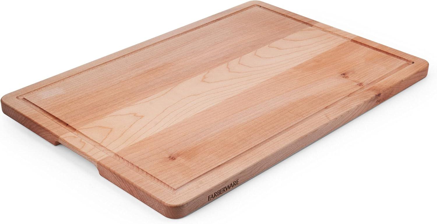 Farberware Rubberwood Cutting Board Set with Juice Grooved and Finger Grips, 3-Piece(Maple)