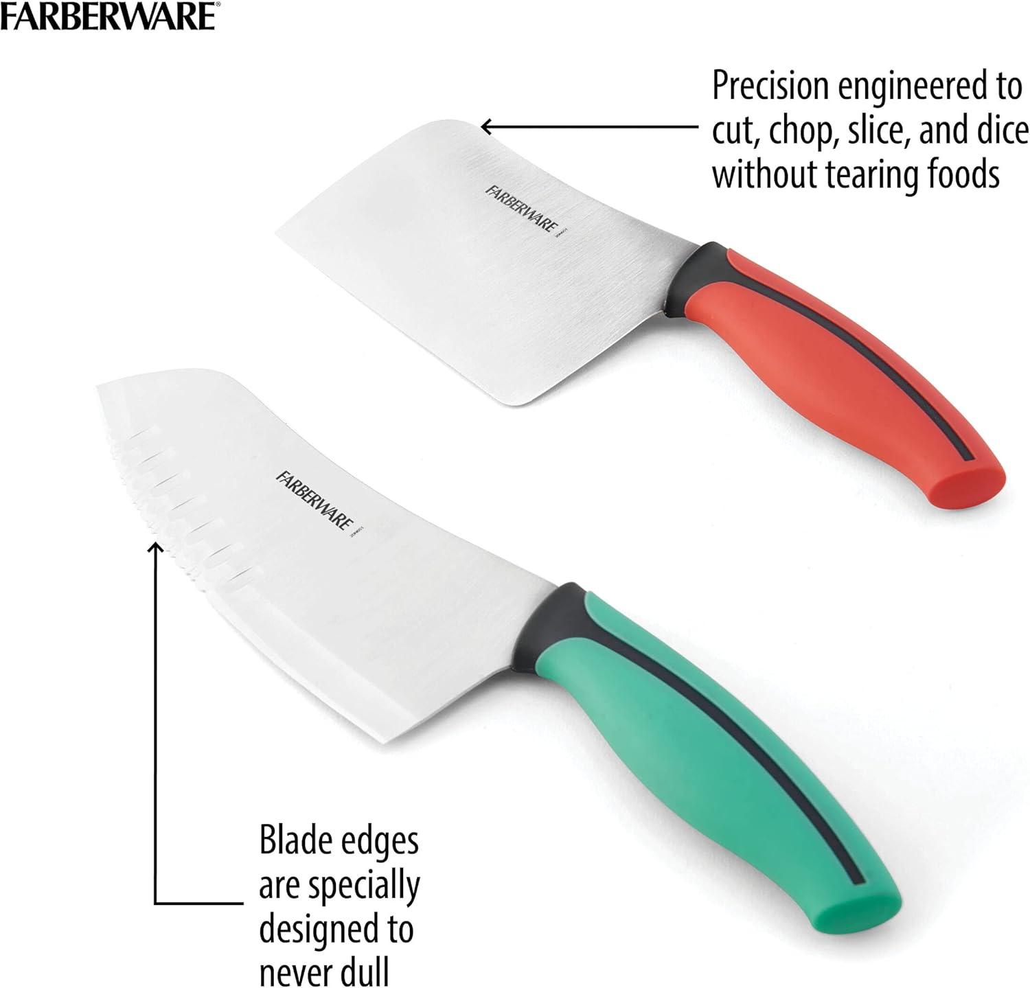 EASY CARE: Farberware knives should be hand-washed with warm water and a mild detergent. Rinse and dry immediately. Stainless steel knives are not dishwasher safe. Lifetime limited warranty.