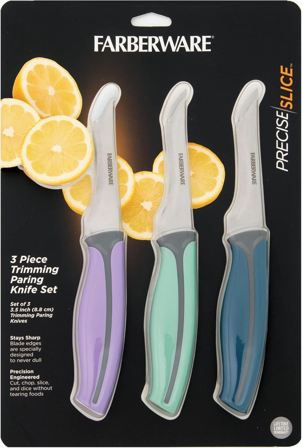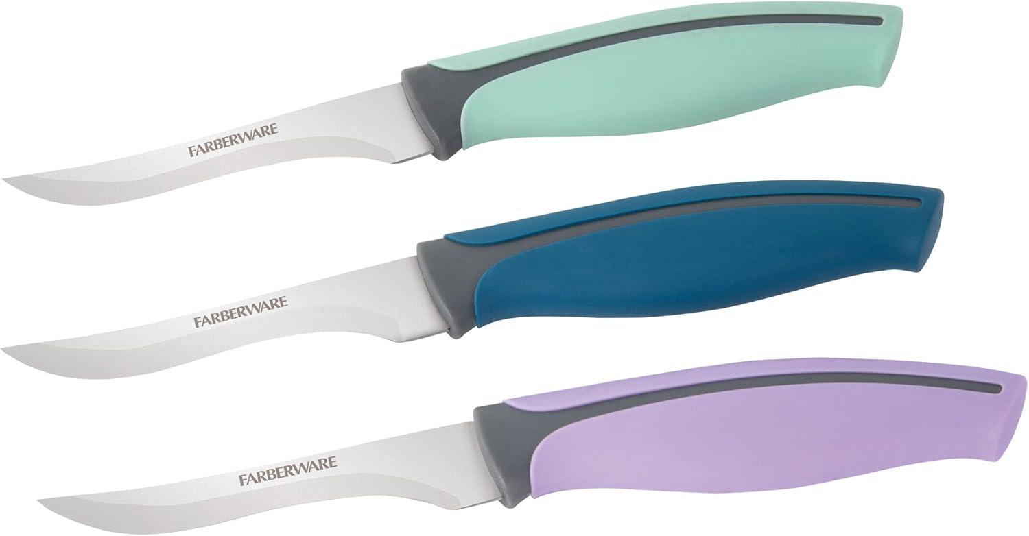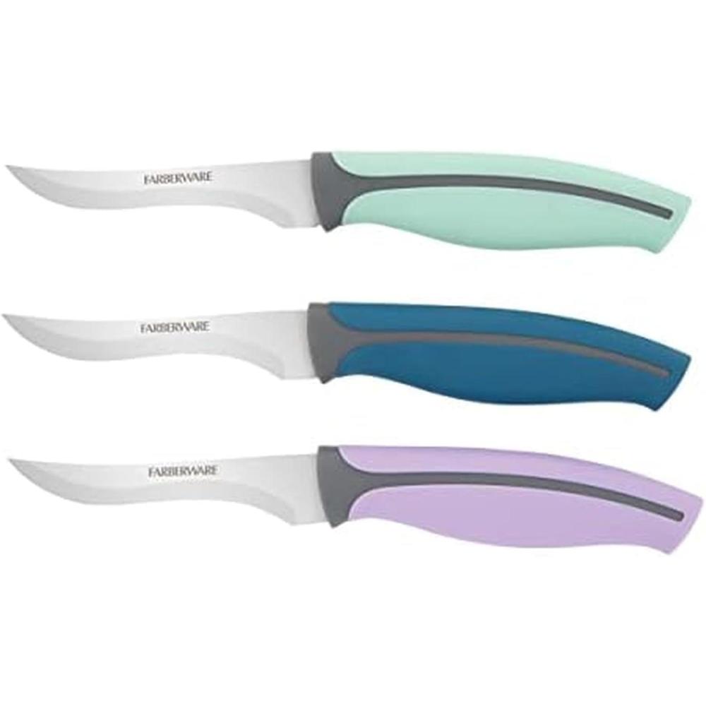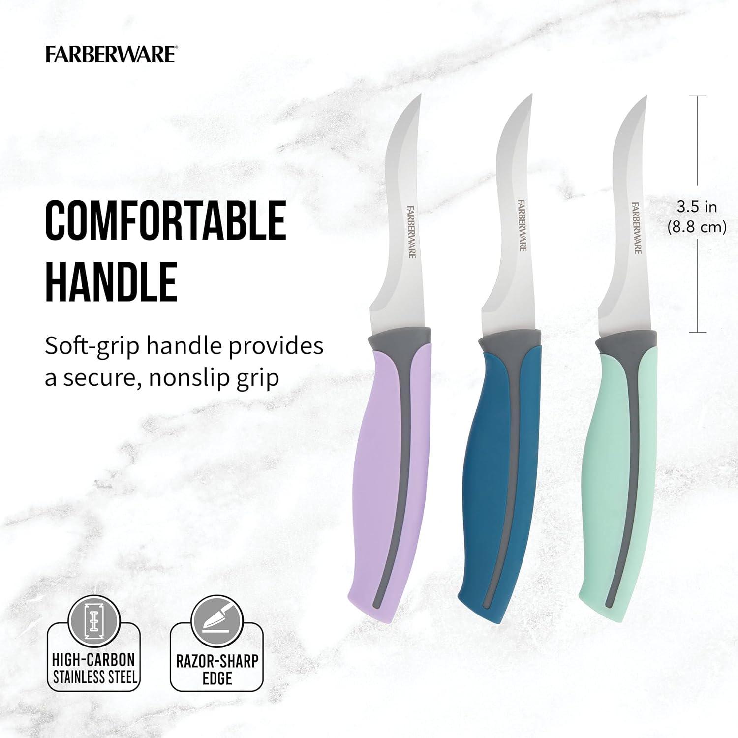 Farberware Soft Grip Serrated Chef Knife, 8-Inch, Navy(3-Piece Trimming Parer Knife Set)