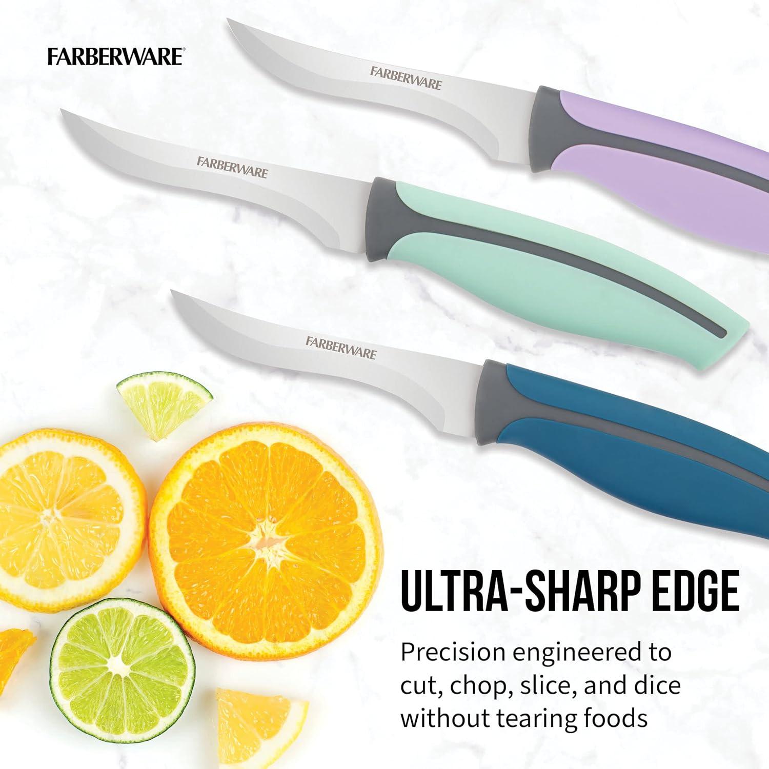 Farberware Soft Grip Serrated Chef Knife, 8-Inch, Navy(3-Piece Utility Knife Set)