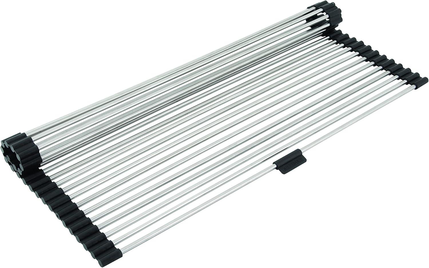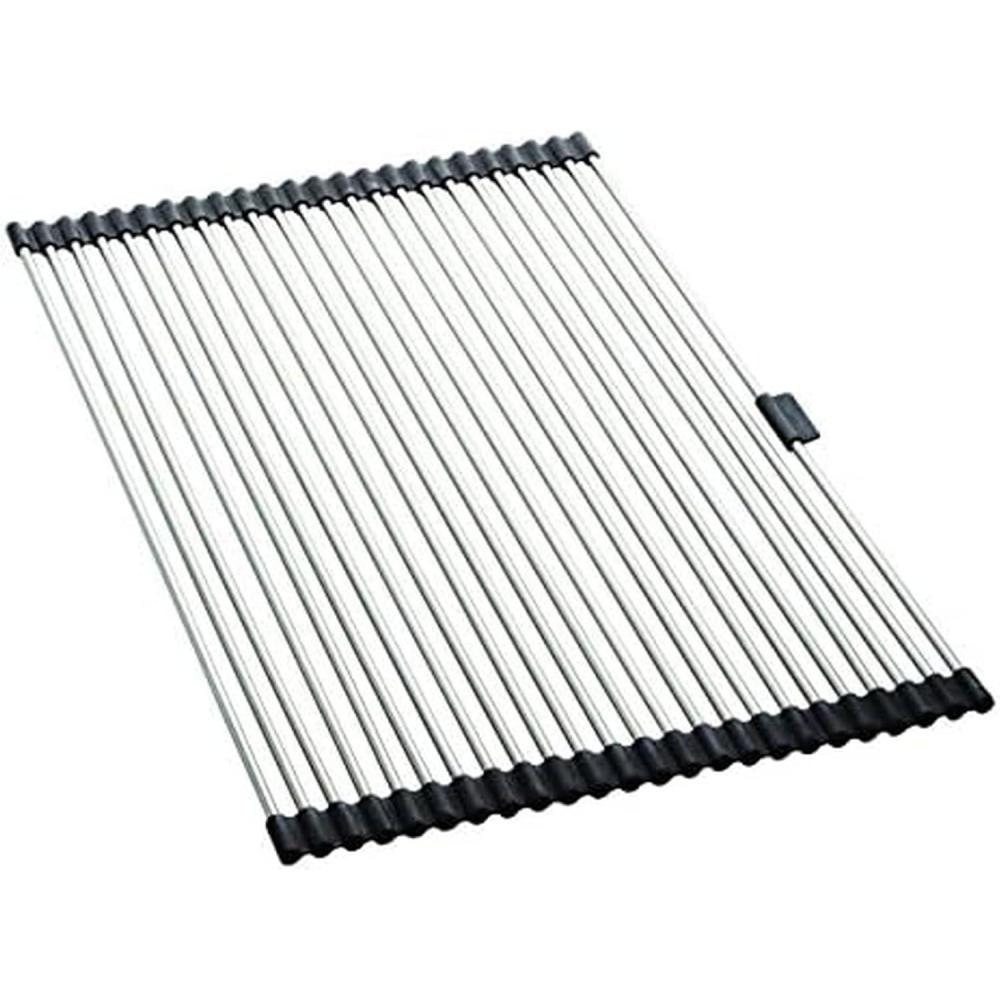 imageFarberware Space Saving Roll Up Over The Sink Dish Drying Mat with Rust Resistant Stainless Steel Wires with Non Slip BPA Free Food Safe Caps Large SilverBlack