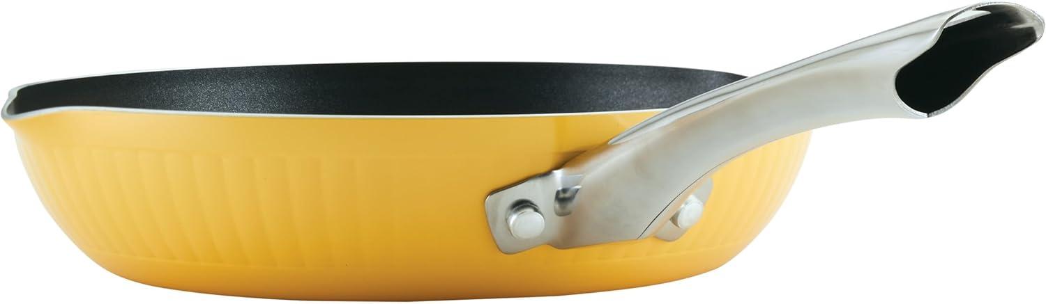 Farberware Style Nonstick Cookware Pots and Pans Set with Cooking Utensils, Dishwasher Safe, 10 Piece - Blue(Yellow)