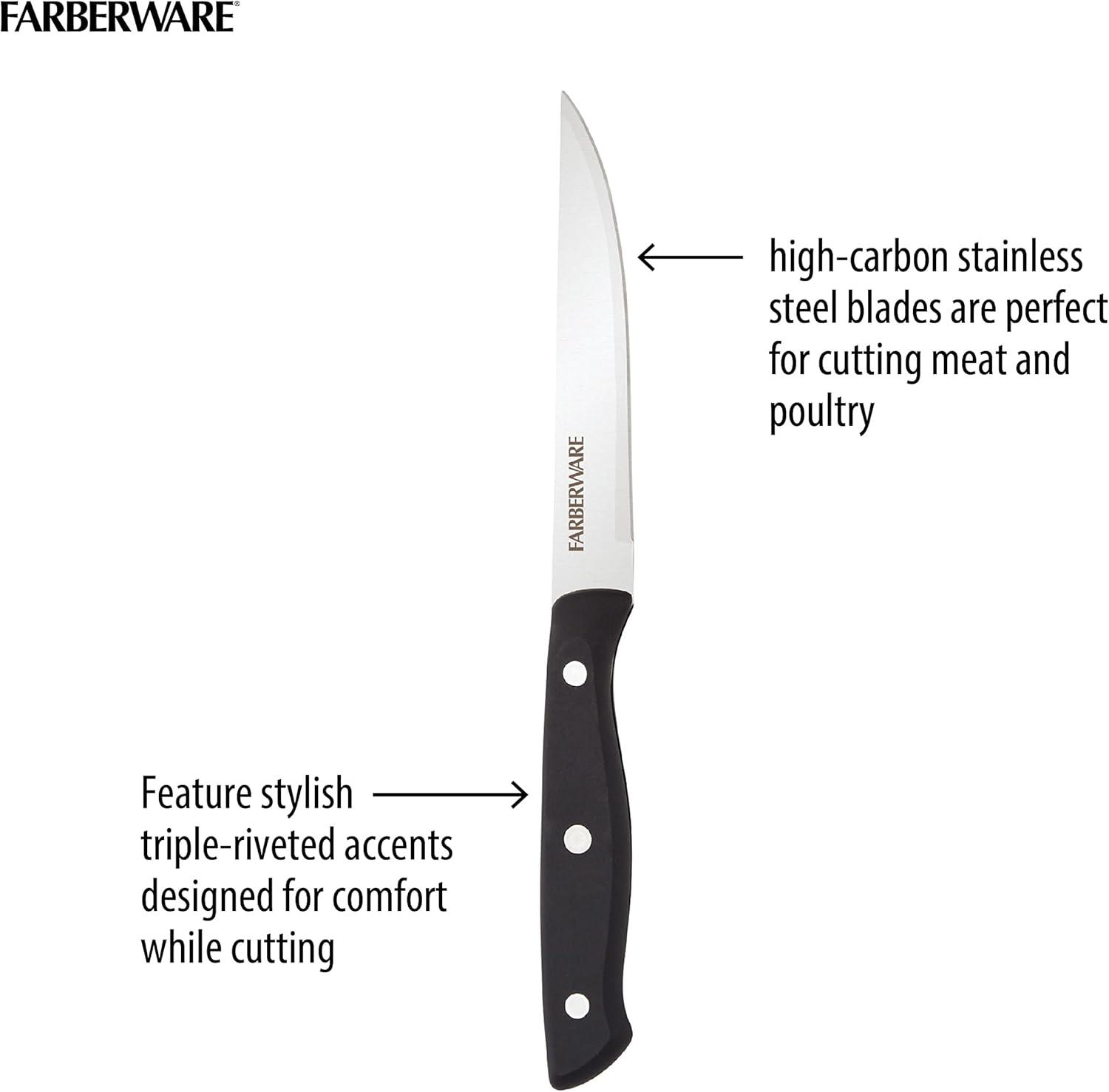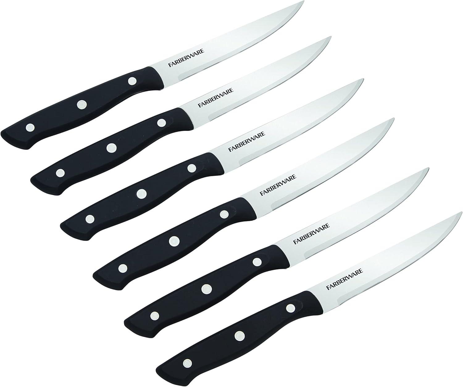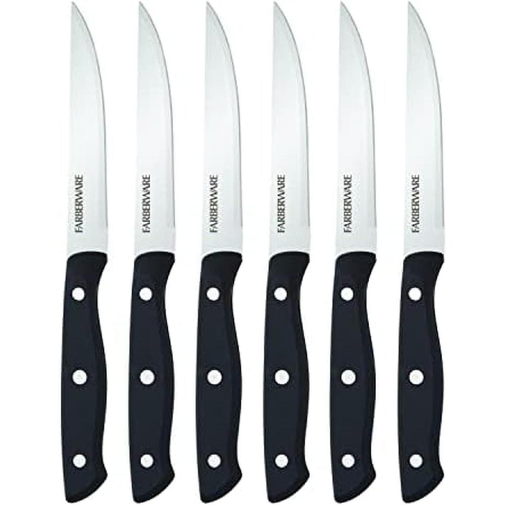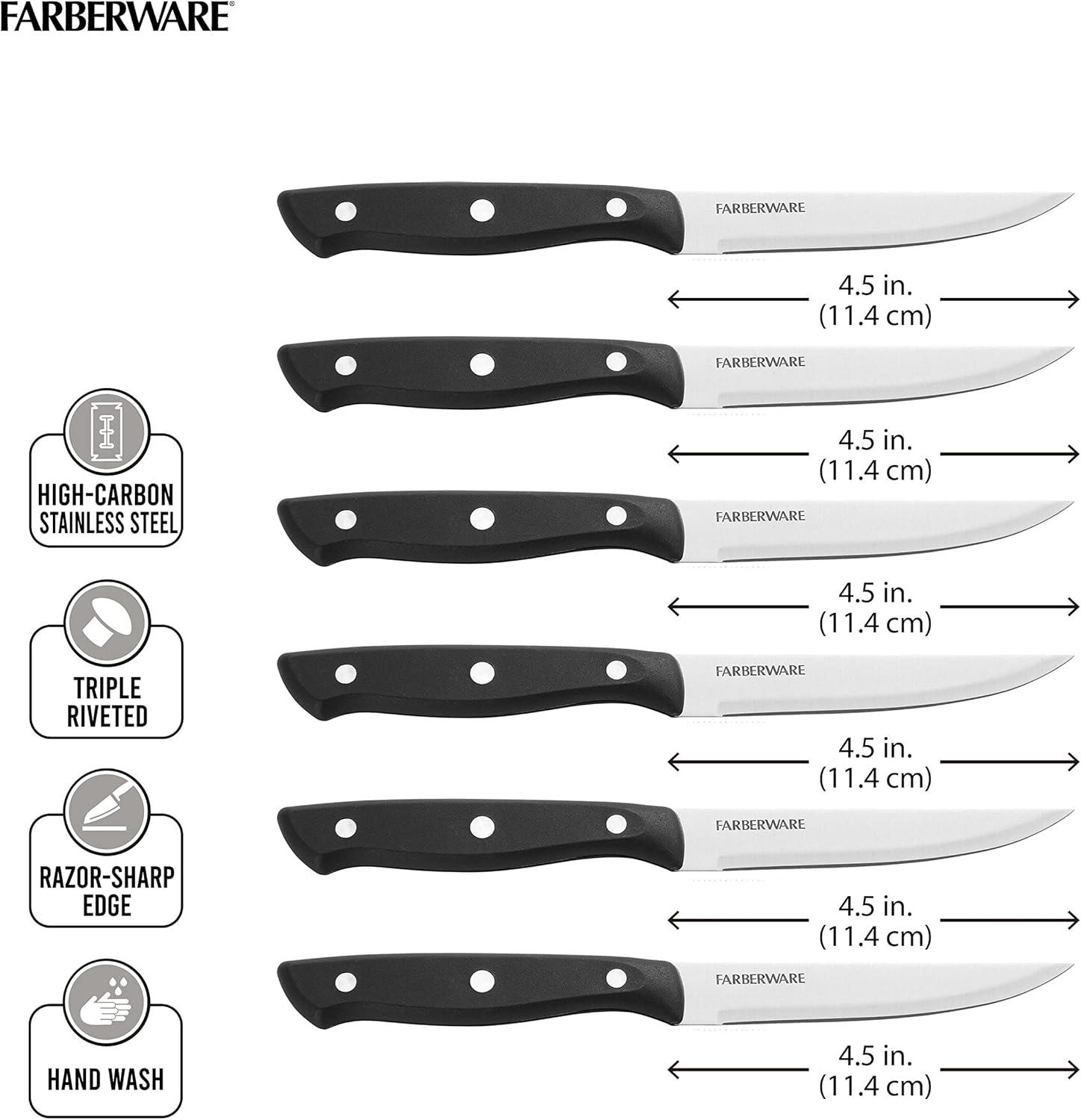 Farberware Triple Riveted Steak Knife Set, 6-Piece, High-Carbon Stainless Steel Knife Set, Razor-Sharp Steak Knife Set with Fine Edge Blades, Black(Black)