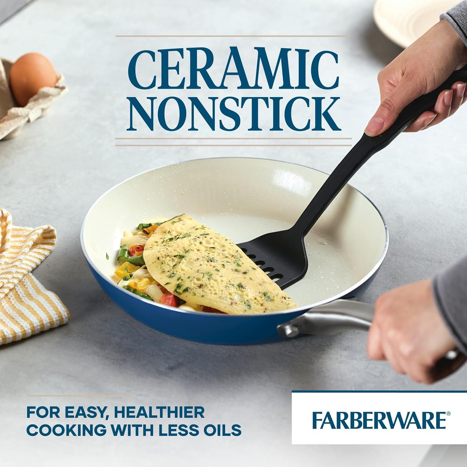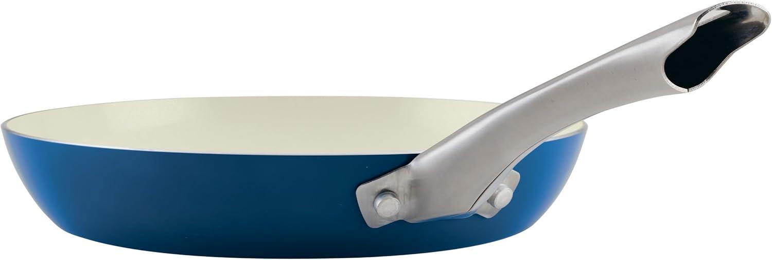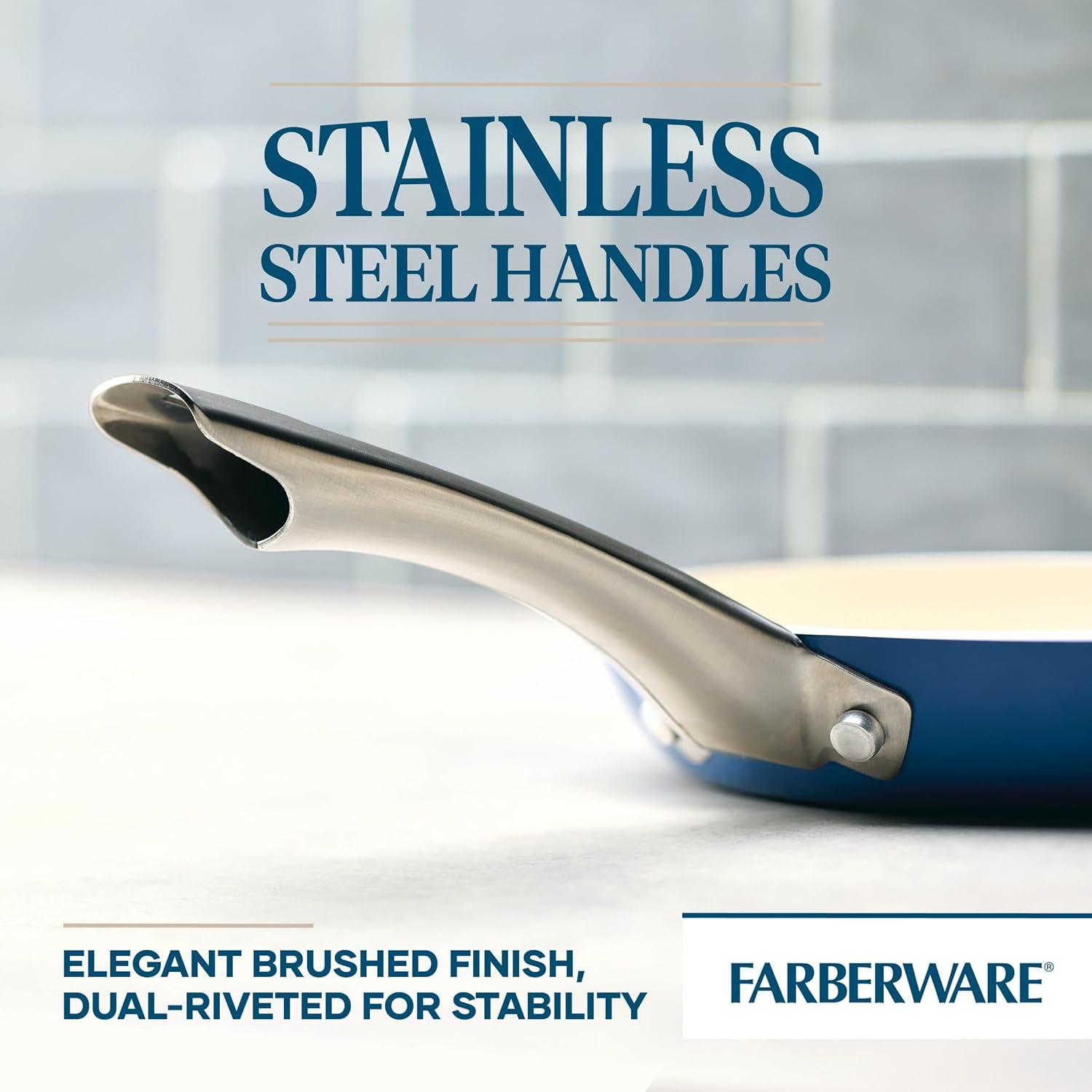 Farberware Vibrance Ceramic Nonstick Frying Pans/Skillet Set with Stainless Steel Handle, Dishwasher Safe, 8 Inch and 10 Inch Open Skillets - Silver(Blue)